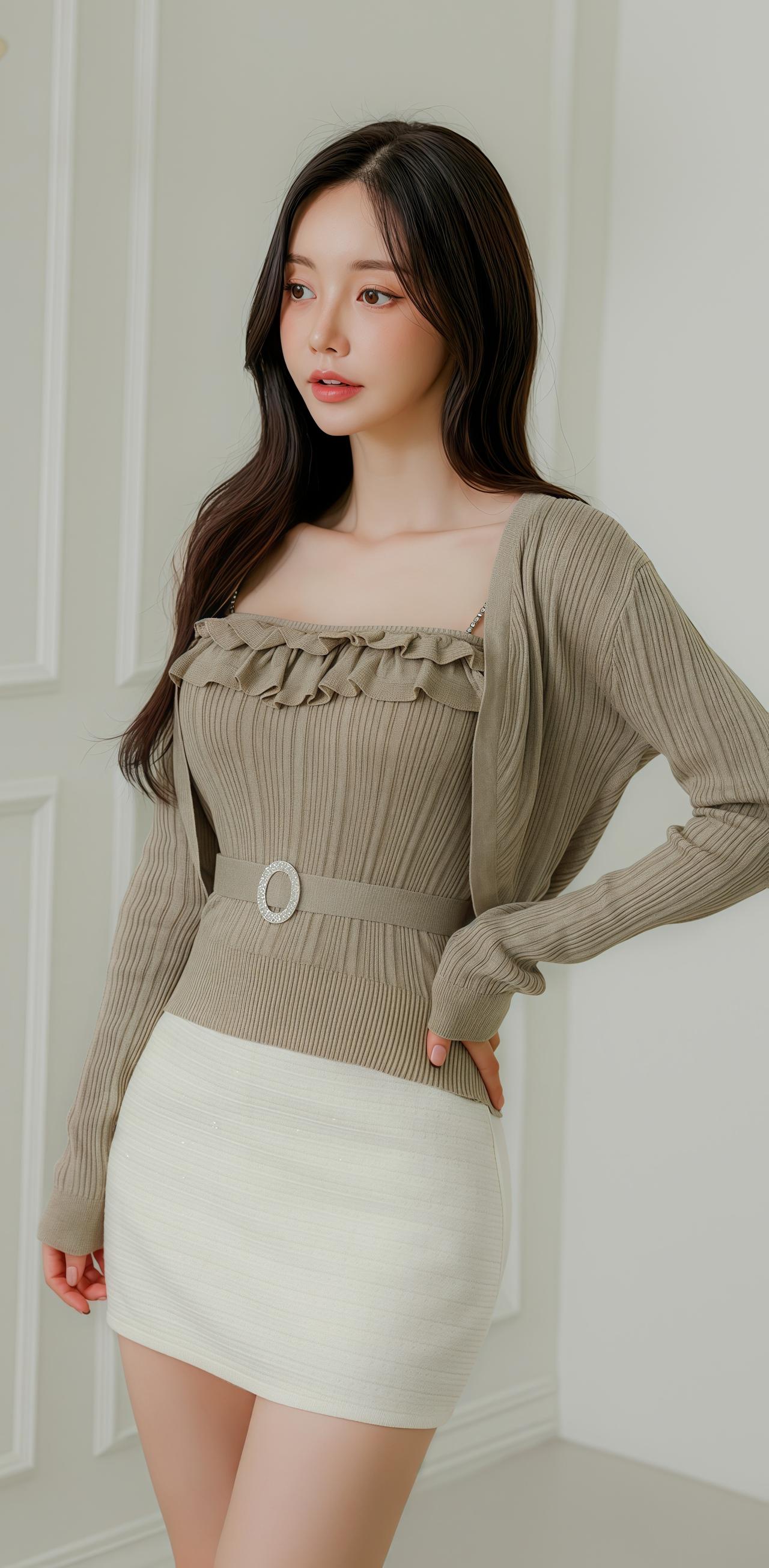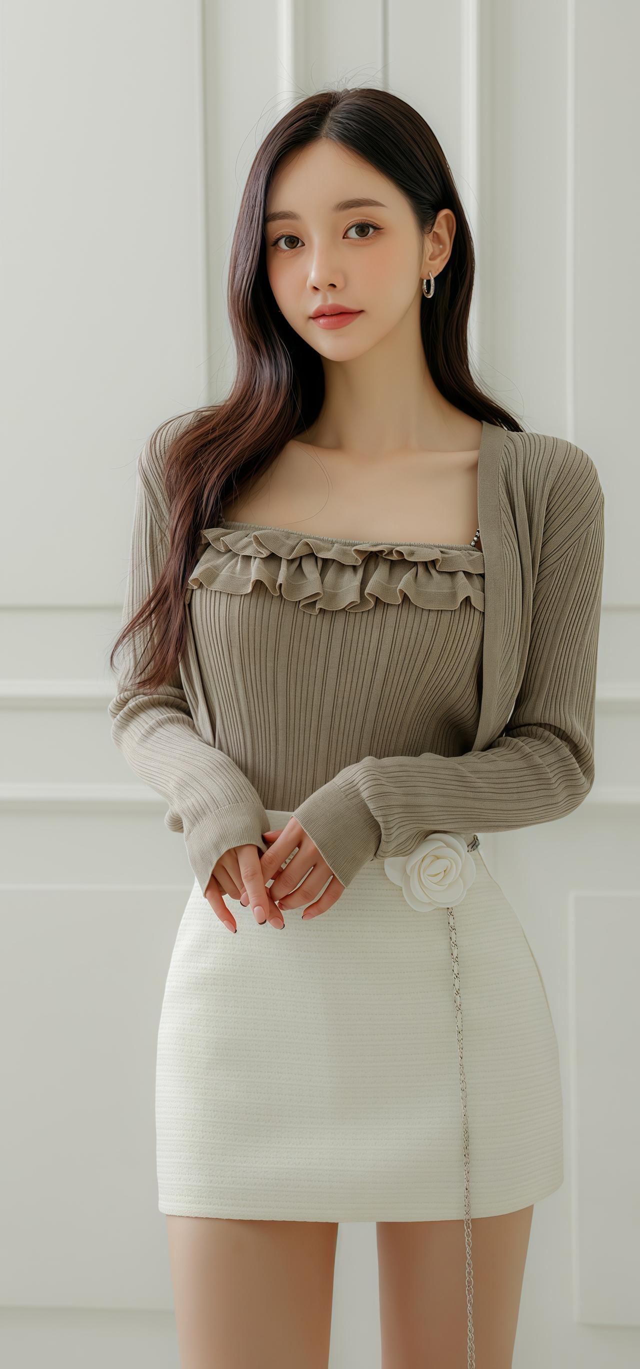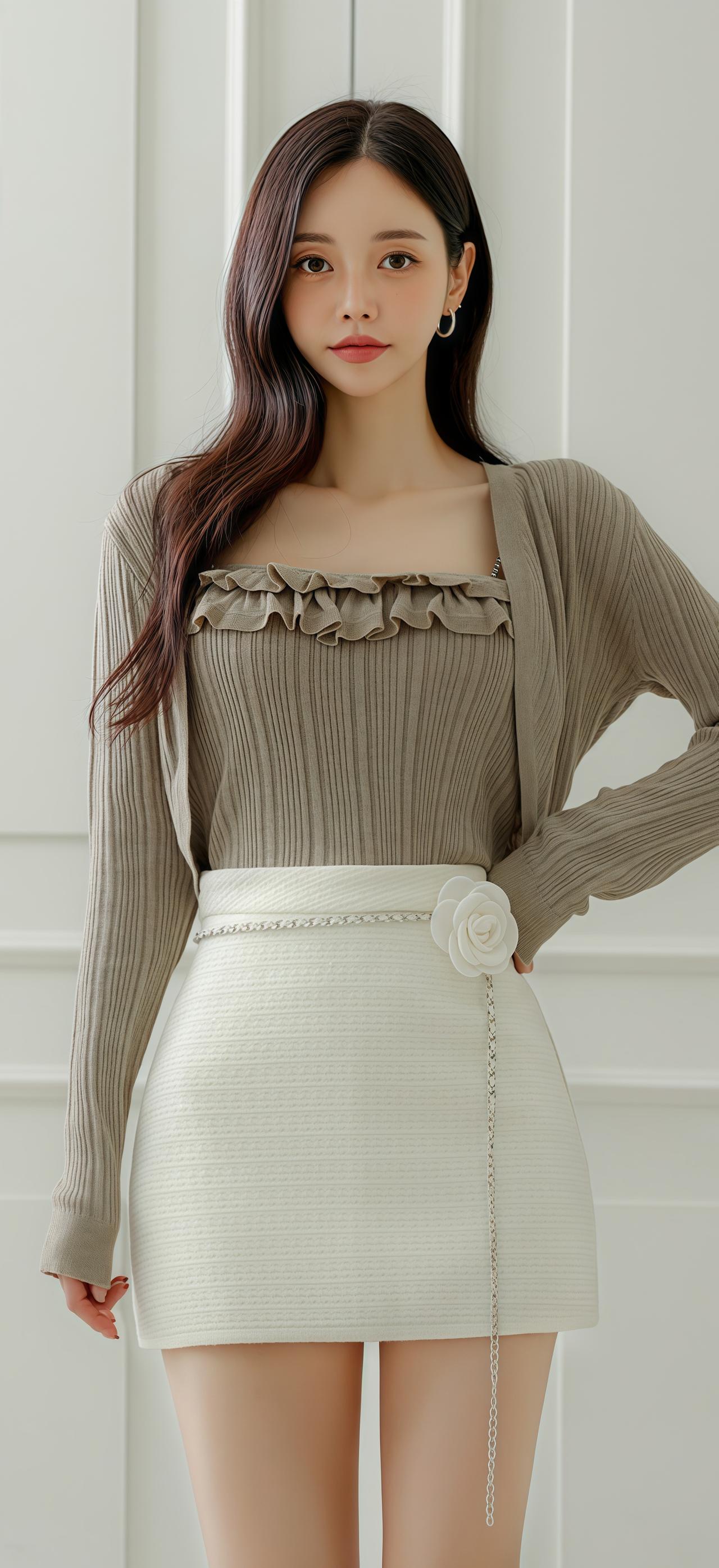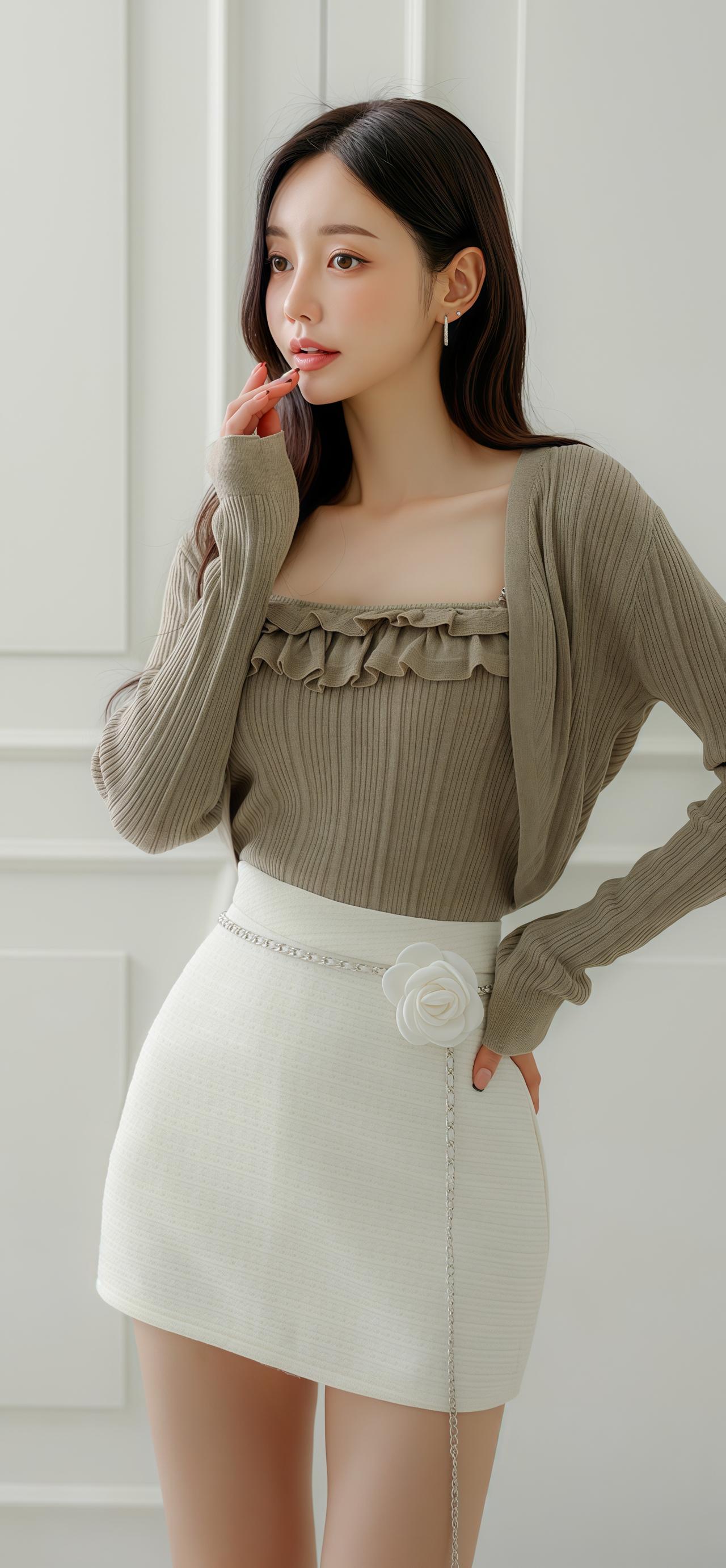 孙允珠小香风千金花朵半包臀短裙图集。小香风裙装