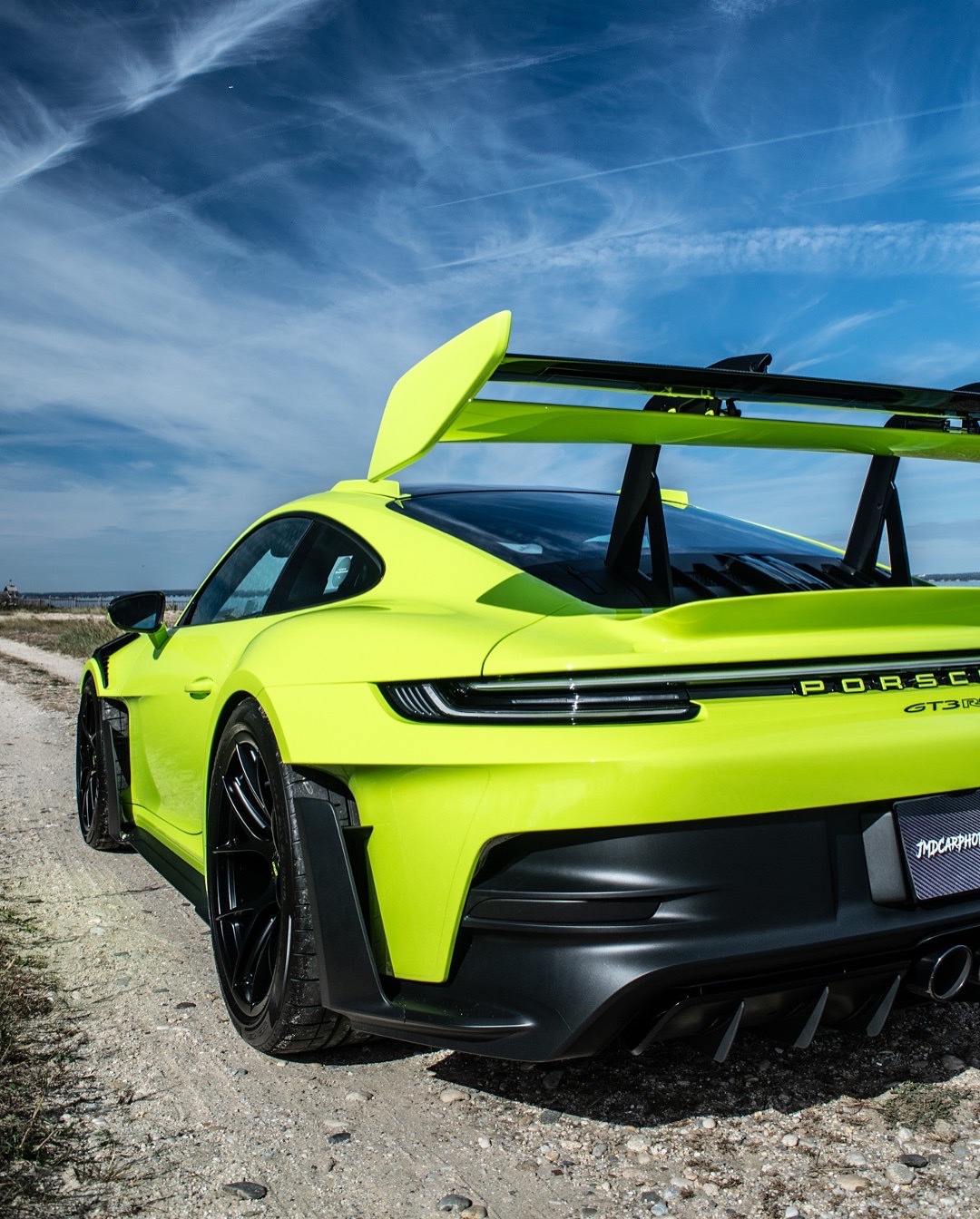这台911 GT3RS以其对比色PtS AcidGreen和黑色——这一配色方案完美地强调了其高性能特性——作出了一种外向的声明。鲜明的霓虹色调,带着微妙的黄色基调,确保了RS在任何地方都能吸引人们的注意。