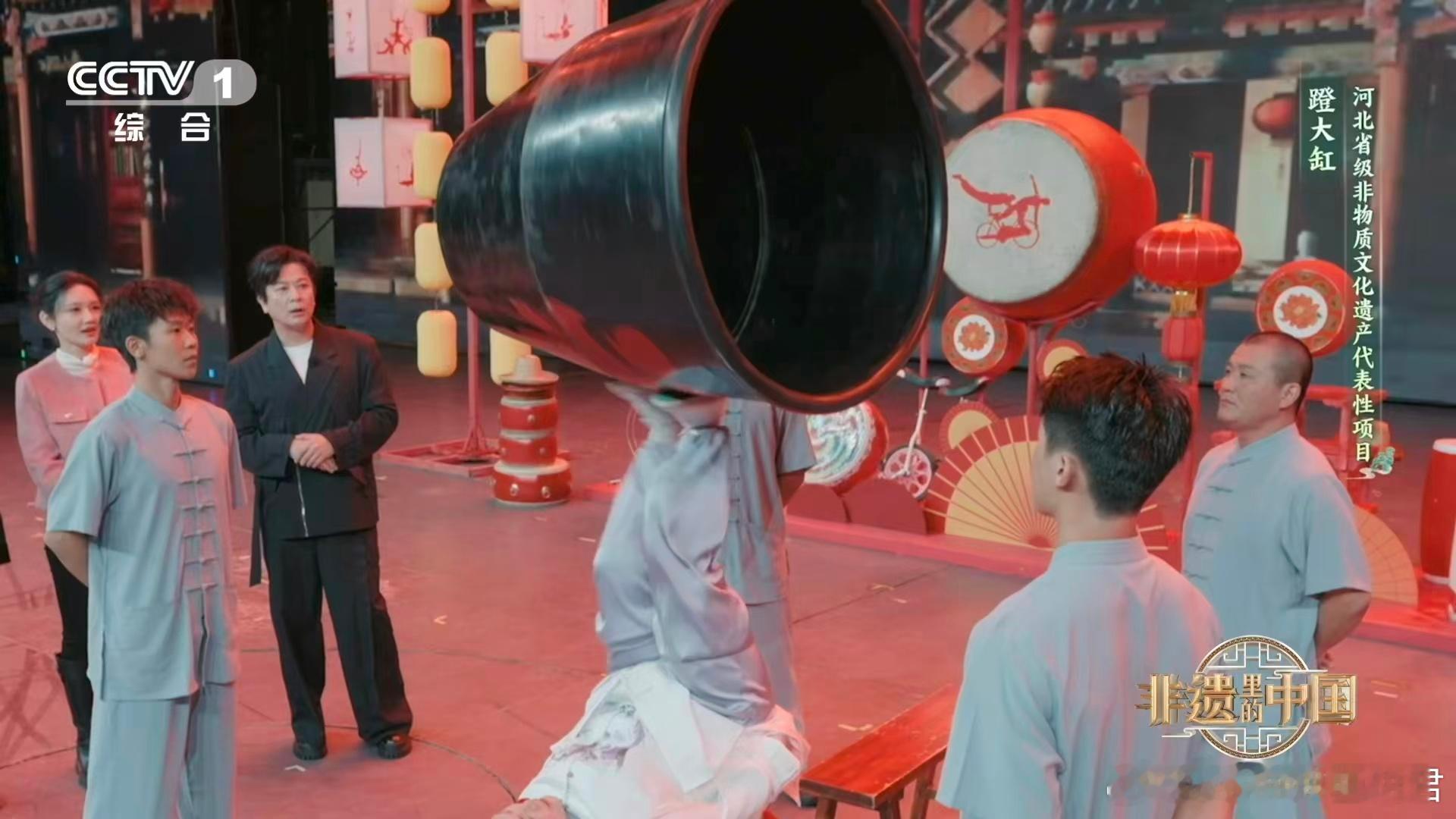 女子蹬起百斤大缸转转转看呆了 看于毅坐在缸里紧张抿嘴,再看女传承人气定神闲!200斤大缸在玉足上旋转如风,吴桥杂技让“力拔山兮”有了柔美注脚。