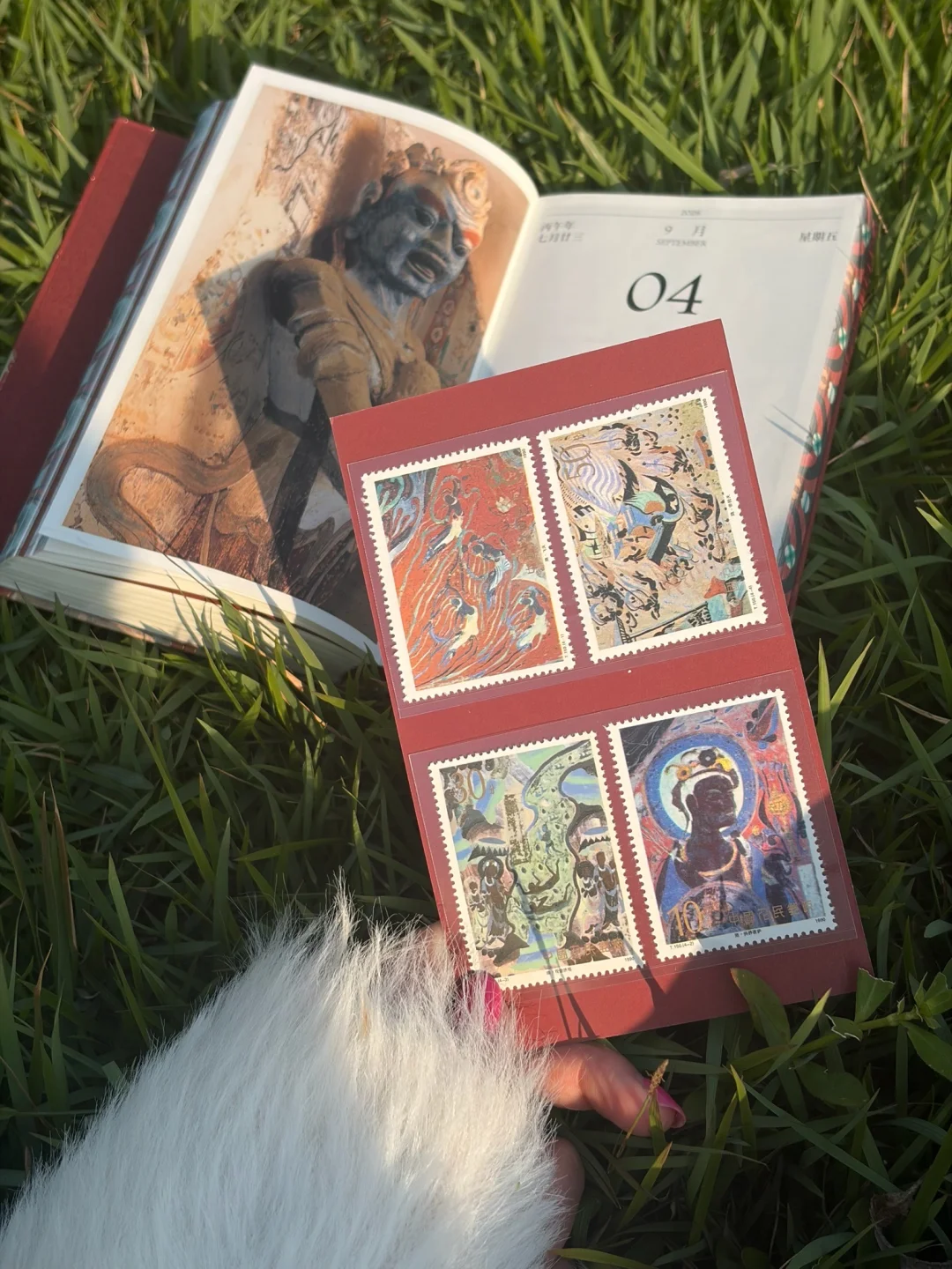 敦煌研究院的老师们深入石窟 花费15天的时间逐窟勘察 选取的画面 可能是我们一辈子很难看到的敦煌艺术 但这次却以日历的形式放在你面前 喜欢收藏日历的朋友 我强烈建议你入手敦煌日历2026 1.365市面独有壁画图片,且与以往日历都不相同 2.马年珍藏纪念邮票藏书票(36年一遇) 3.手工装帧工艺 在重大节日特别印刷敦煌吉章图案 给每一个放假的日子予以重要期待 带来2026年整年的美好 封面如握星河沙金 呈现细腻流动的绸金质感 放在家里都心情愉悦 邮票版库存不多 喜欢的一定早下手哇!!