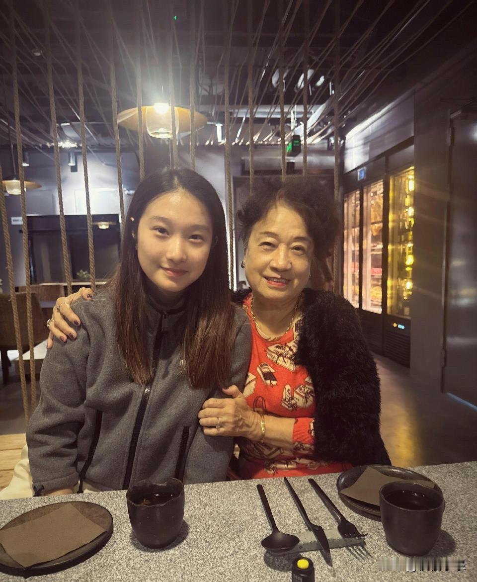 马伊琍17岁大女儿文君竹和姥姥一起聚餐,她化着淡妆,皮肤非常好,五官和妈妈很像,长得挺漂亮的![灵光一闪][灵光一闪]