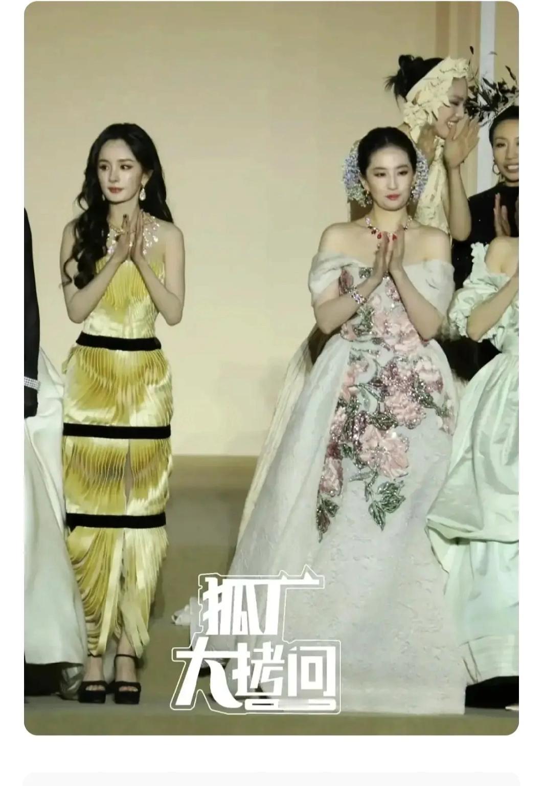 刘亦菲这个下巴……,是因为年龄上来了吗?这么对比着看,杨幂顺眼很多[思考]。 其实…,杨幂今年这件裙子挺好看的,就是占地面积太小了,显得气势不够,要是我,高低🉐加一个金色大披肩,一路走一路用吹风机扬起来[狗头]。 窝瓜今年这个活动属于比较失败的,一线小生/流量大的没来几个,女艺人这边也有一打以上流量大的、有实绩的没露面…… 也就是杨幂跟美国大姨谁也不理谁冲上了热搜,否则就没点话题,没点水花。 杨幂肯定是被刘冲哄来的,因为交情不得不来。其他女艺人都精🉐很,因为“工作忙”来不了[狗头]……