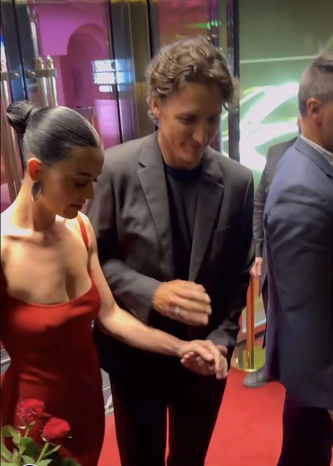 Katy Perry(凯蒂·佩芮)身着红色缎面连衣长裙,挽着新任男友——加拿大前总理Justin Trudeau(贾斯廷·特鲁多)的手,惊艳亮相法国巴黎的一场慈善晚宴。 很牛一女的。 正式官宣恋爱。