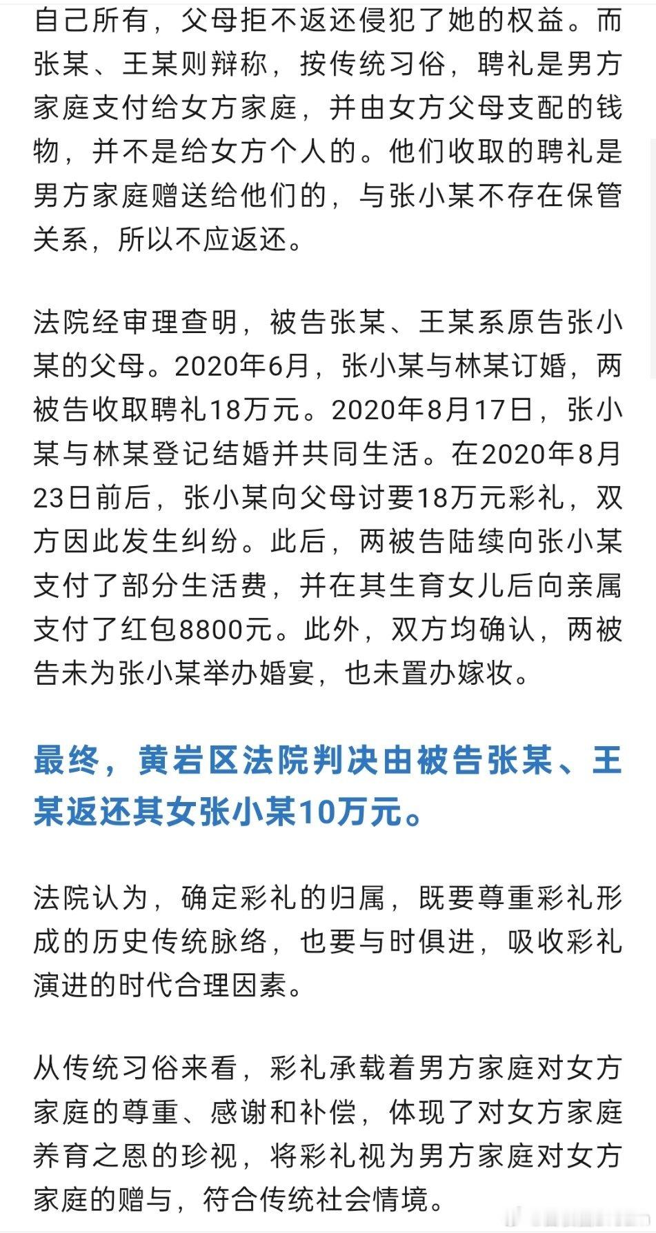 18万彩礼被扣下女儿起诉爸妈