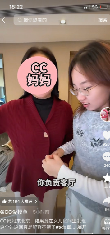 cc在直播间口吐狂言,惹得她妈妈一句话,赶紧闭嘴吧!虽然cc吓的不敢再说,这不,这还没完,cc妈妈直接“杀”到北京,要来问罪了吗? Cc新租两居室,还在直播间说只要两人感情到位,奔着结婚去的可以同居,cc妈妈直接让她弟弟搬来居住,看来这是真的防着凯哥的! 说实话,cc妈妈不愧是当老师的,分配工作杠杠的,还收拾到了一件男士内裤,这不,顶锅哥上线了,原来是从小一直就为姐姐顶锅啊!