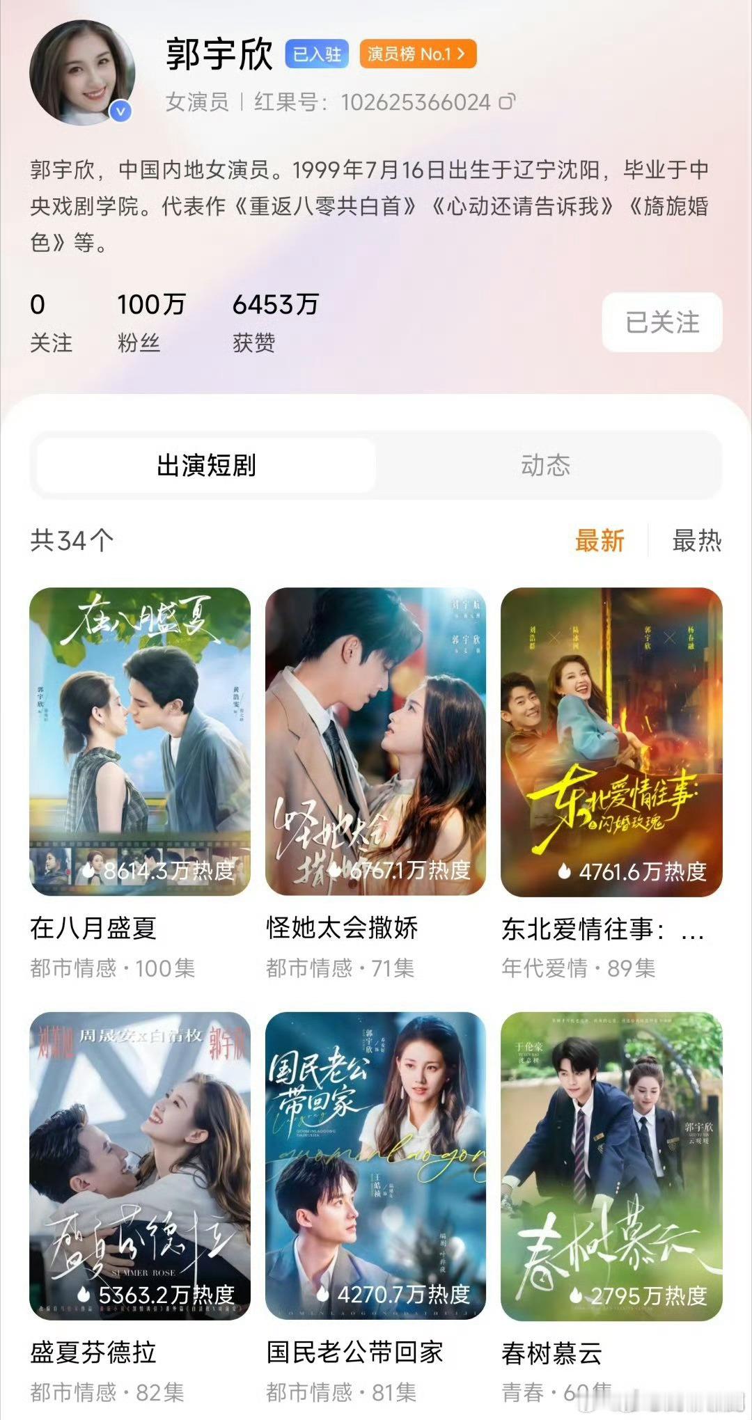 盛夏芬德拉女主进组玉簟秋玉簟秋 郭宇欣在《盛夏芬德拉》里表现超棒,一下就火了。她是科班生,听说要进《玉簟秋》组,这民国剧妆造肯定很适合她,等官宣!