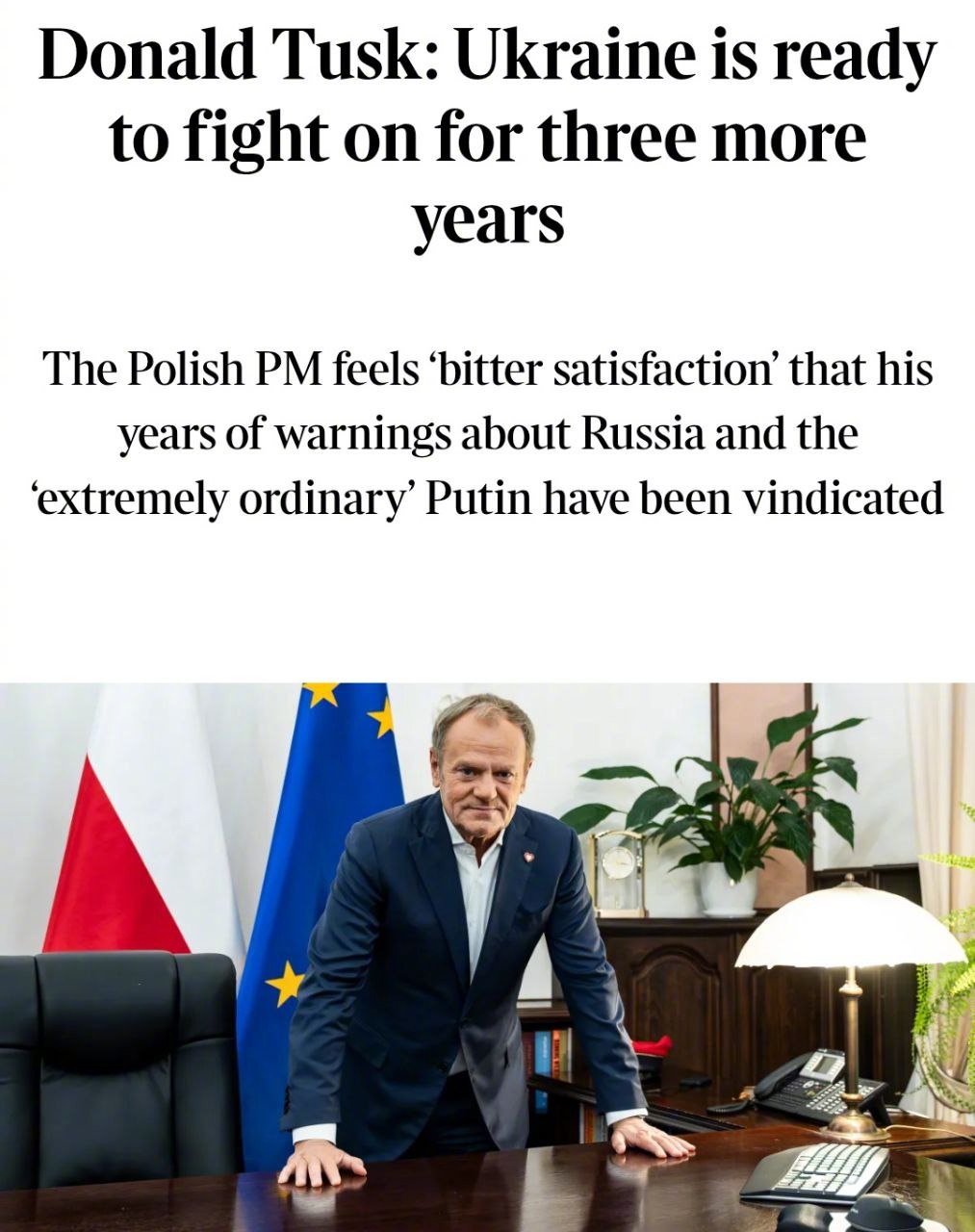 波兰总理图斯克表示,乌克兰准备再战斗2到3年。