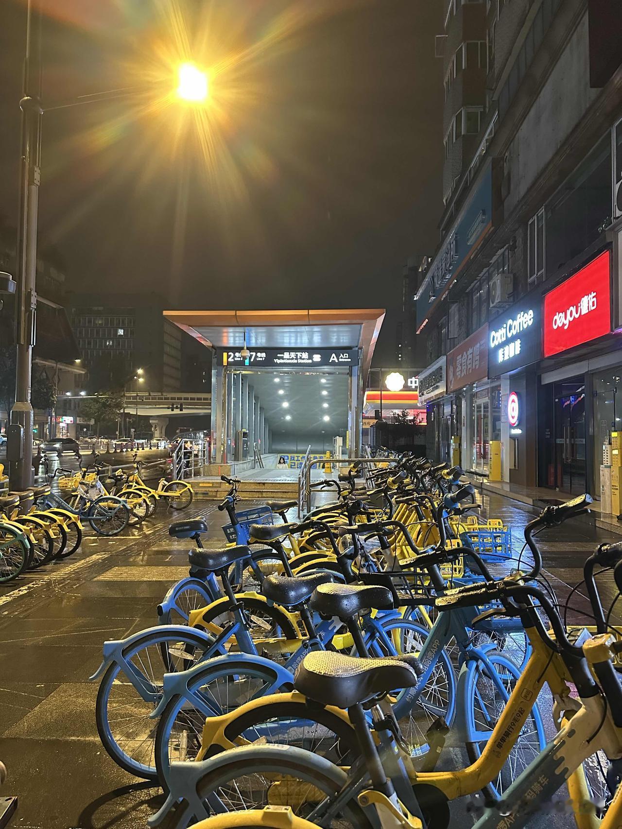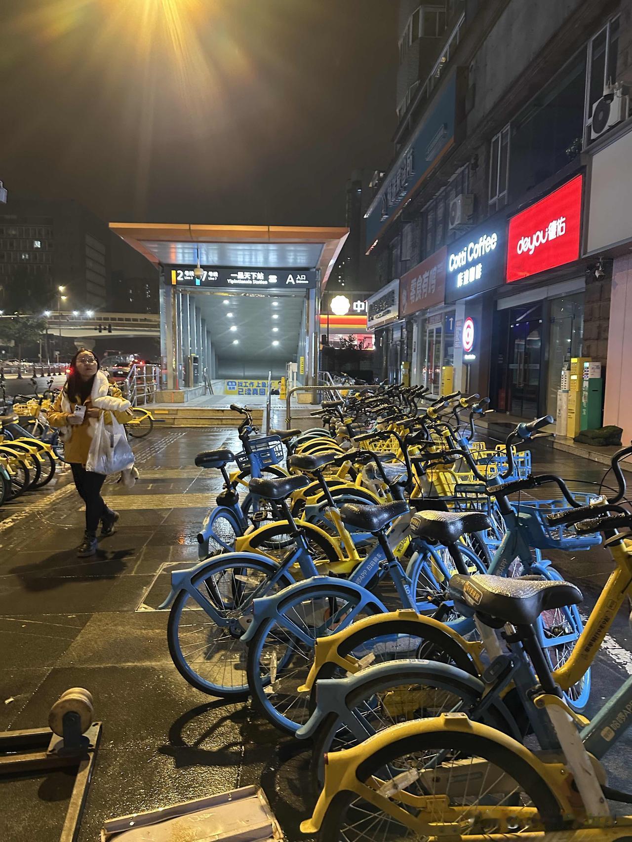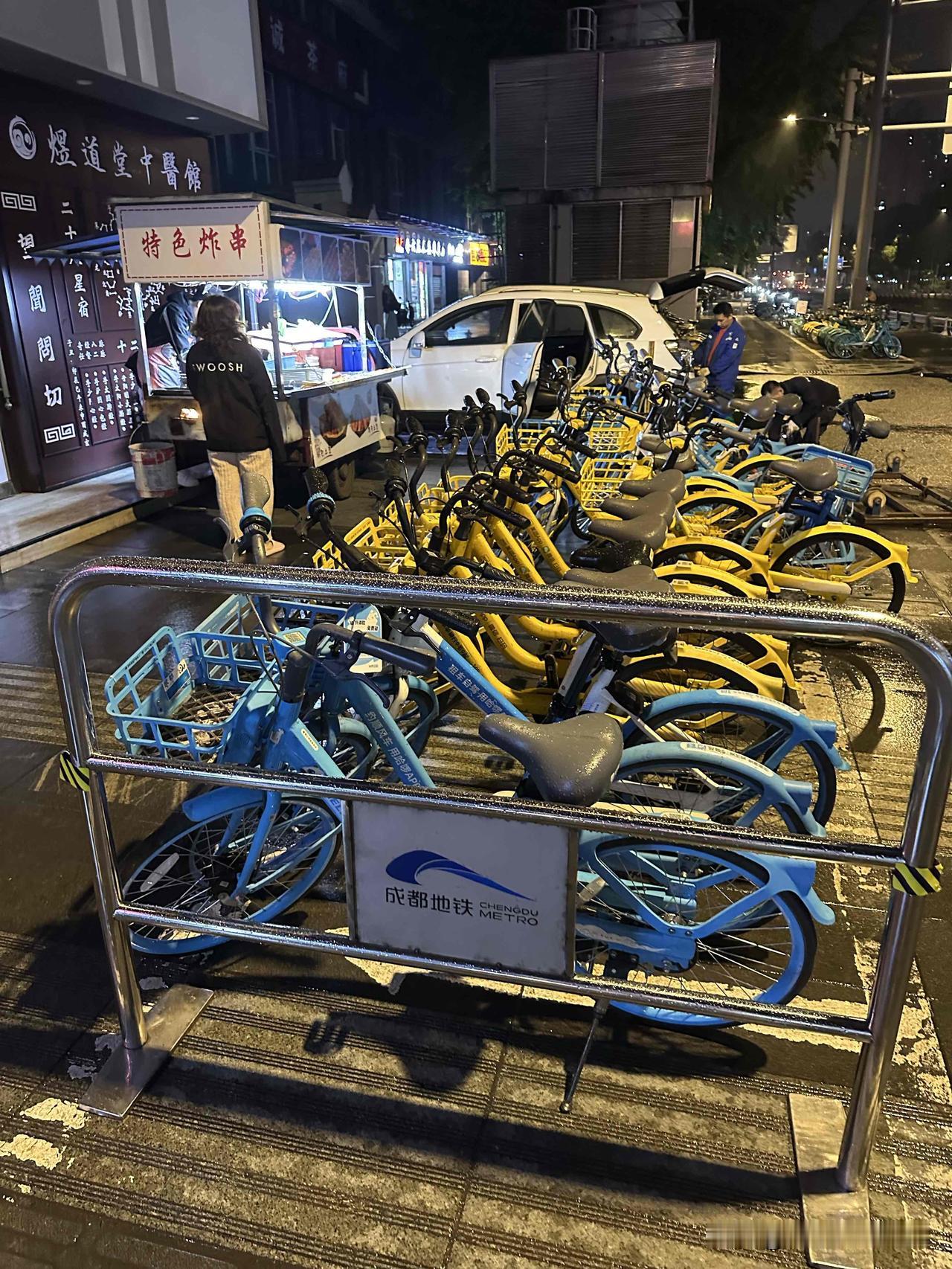 哈哈哈!笑哭我了!重庆人勇闯成都啦!真没想到,成都一些地铁站,出站居然是没有电梯的噢!10月26日深夜,我用尽全力把两个行李箱搬上去之后,意外大惊喜来啦! 好多好多花花绿绿的自行车,让我好生欢喜! 这可真是我最喜欢的玩具啦! 嗯嗯,人力自行车,太令人感动啦! 重庆主城,有些地方有共享电动自行车,不能自已用双腿驱动,不过瘾啊! 成都旅行很大的一个吸引力,就是可以骑自行车啦!