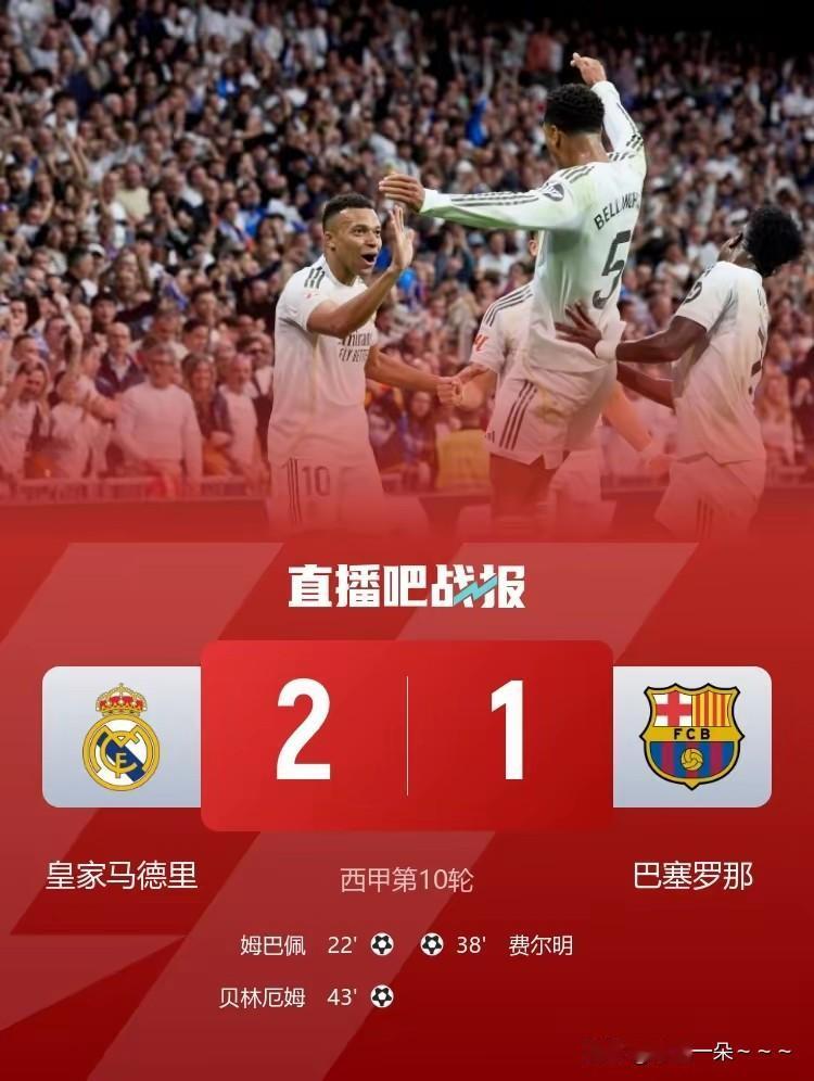 战报!刺激吗? 只能说上半场挺刺激的,幸亏自己就看了上半场,上半场皇马进攻是真犀利啊,左突右突中间还能插。巴萨这个防线被维尼修斯和姆巴佩给打爆了。 话说,这个反应快也不行,姆巴佩老是越位,你速度再慢一点至少上半场能搞个3:1到4:1吧。结果就踢了个2:1,还一直保持到了最后!下半场双方毫无建树,幸亏我提前睡了。 咱们再看巴萨,右边路的当家球星传球倒是挺有灵性的,但是,昨天突破和射门就差了一点意思,是不是最近比较累啊!晚上早点睡觉,节制一点,自律一点! 恭喜一下皇马吧,西班牙德比主场2:1战胜巴萨,皇马球迷,哎呀,男女老少的太高兴了,没法说,太嗨了吧?