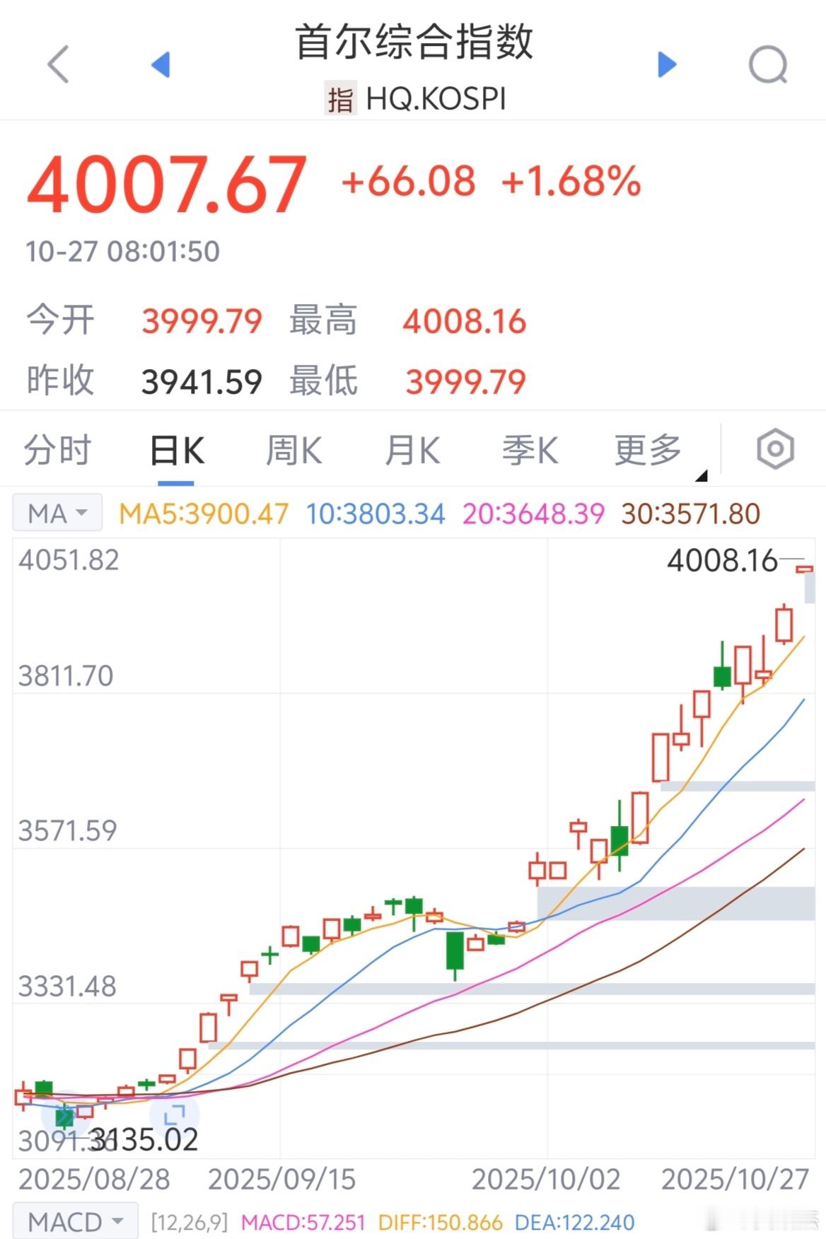 我嘞个去,韩国股市指数冲上4000点了~~疯了啊!a股