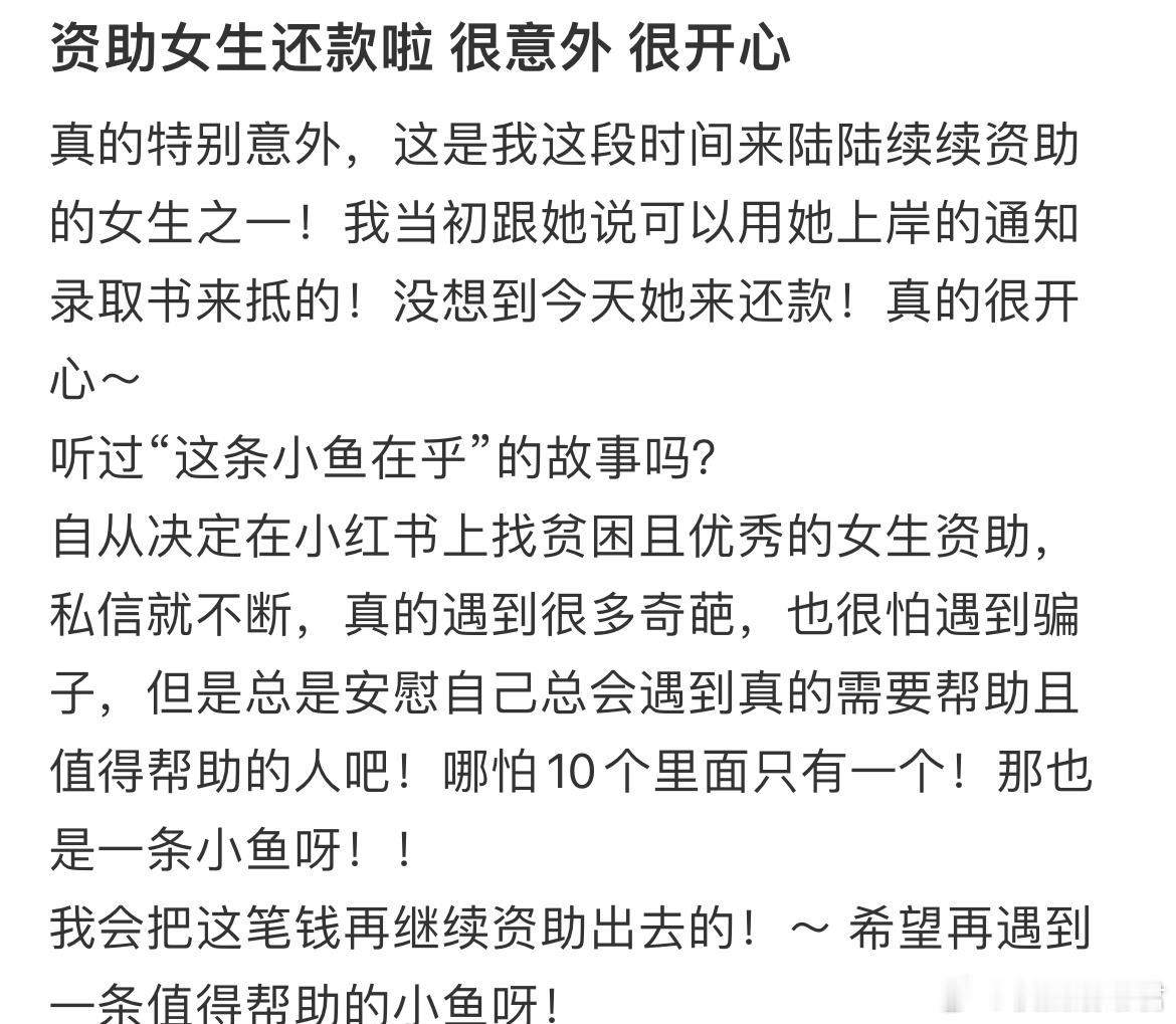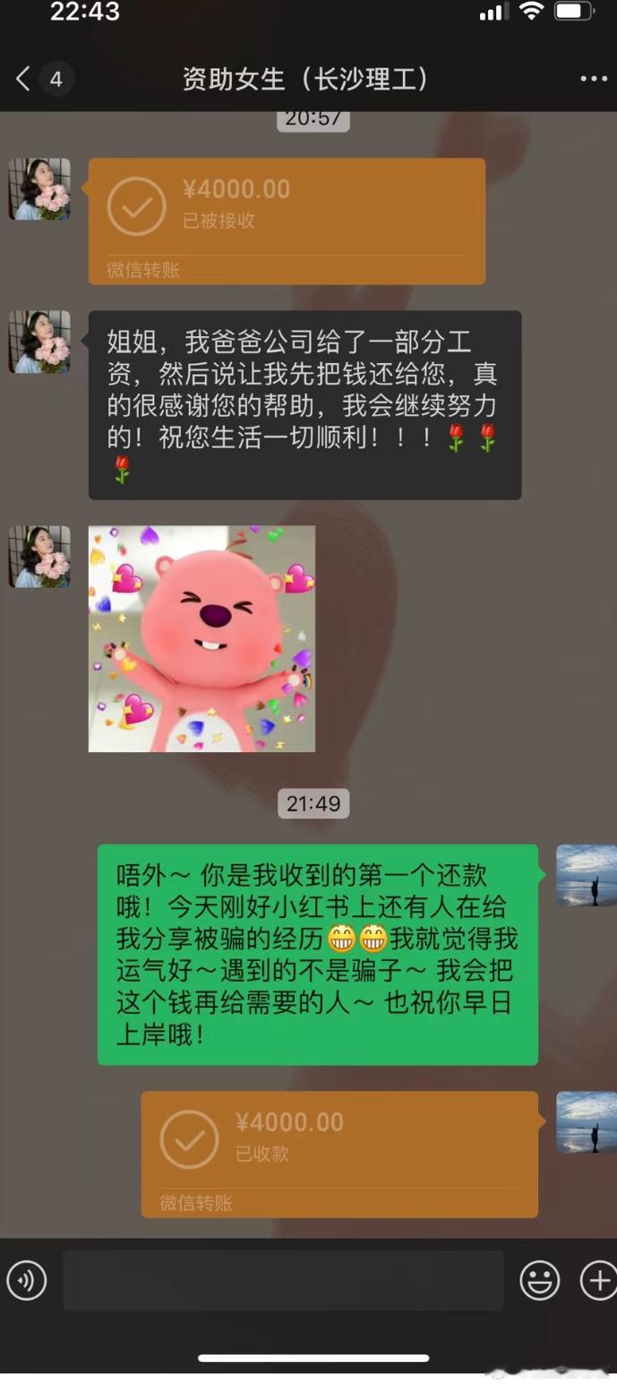 资助女生还款啦 很意外[哆啦A梦害怕]