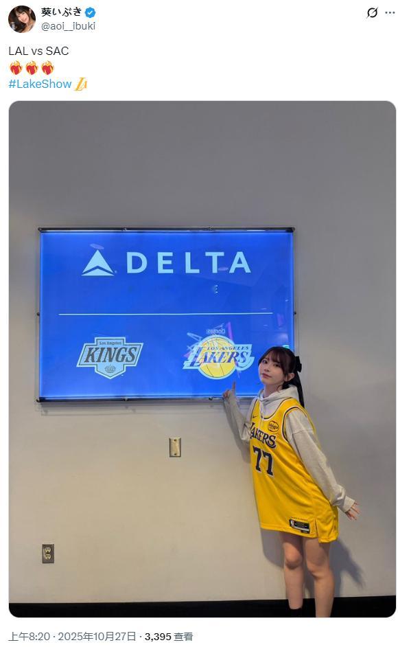 哦呦,今天湖人打国王,葵宝又去现场看球了!