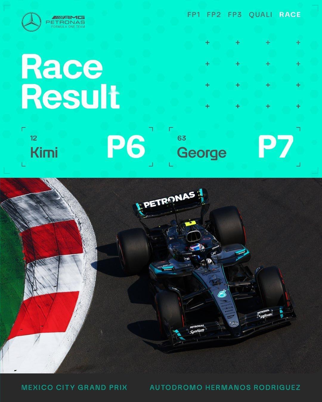 梅赛德斯双雄安东内利与拉塞尔分列第六、七位,车队兑现了比赛中段让安东内利为拉塞尔让车的承诺,在最后阶段交换了两人位置。拉塞尔对车队延迟下达让车指令强烈不满,但仍在被皮亚斯特里超越后执行了车队指令。