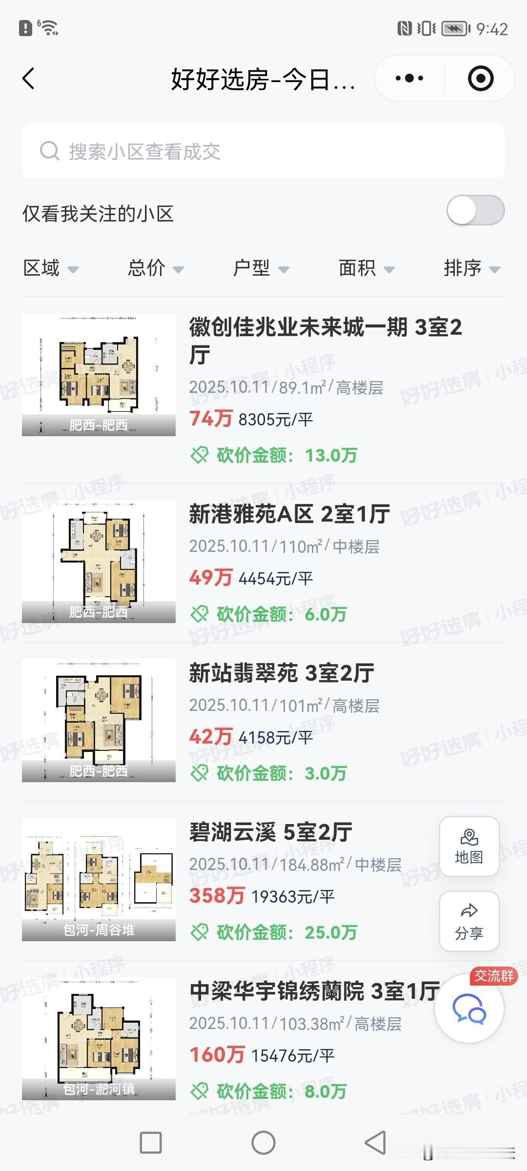 合肥最新一天二手房的成交情况。成交量依旧很多,不过都是性价比很高的。 市场上还是很多人买房子的,要买房的可以参考一下。不过说句可能不能说的话,一直在等等的观望的,又赢了。 房贷利率不降到2以下,是改变不了目前这种局势的。