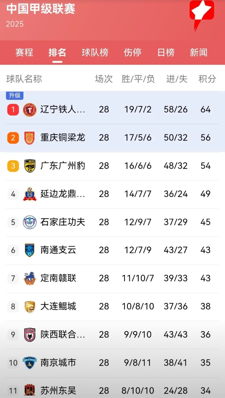 向余望明年有希望打中超了,辽宁铁人已经提前2轮夺冠并升超,剩下一个名额将由重庆铜梁龙和广东广州豹竞争,重庆领先广州2分,最后2场比赛把握好了有希望冲超了,中甲本土第一射手向余望必须在下2场继续努力了,争取明年能打上中超,西南足球崛起,成都蓉城还有机会争冠,升班马云南玉昆第一年平稳保级成功,如果重庆铜梁龙能冲超,西南足球有3支顶级球队了。