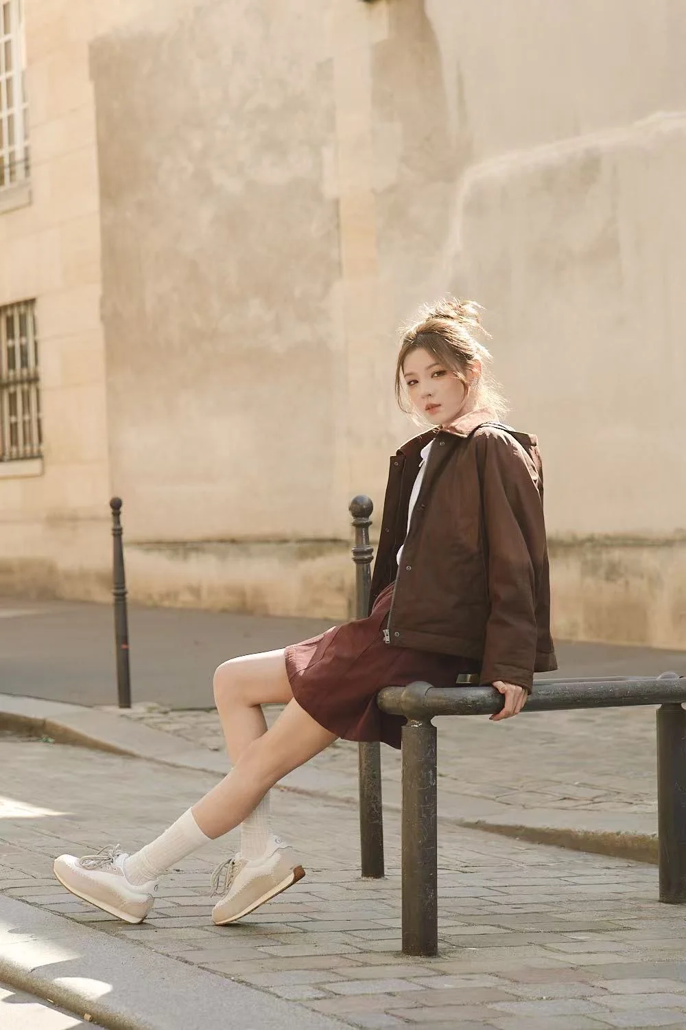 张予曦私服更新,一大波美拉德色系来临,看来在这个秋天,这个色系依然占据C位! 第一套的棕色系夹克配深棕色系短裙,不同色系增加层次感,同时又内搭了白色衬衫加以留白,脚踩了一双白色厚底德训鞋,不仅和衬衫的颜色遥相呼应,同时又很显高显瘦!真的是小心思满满的秋日穿搭,感觉小个子姐妹可以直接抄作业! 翻红吧衣橱 张予曦 秋日时髦尖子生 图源 张予曦