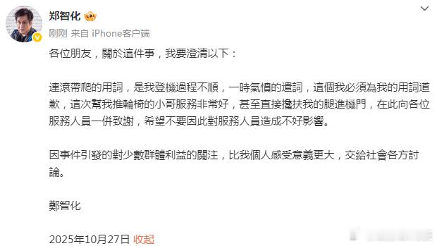 郑智化坐飞机全程录像曝光了,从视频中可以看到,为了让郑智化能够顺利进入飞机,前后