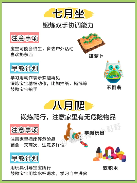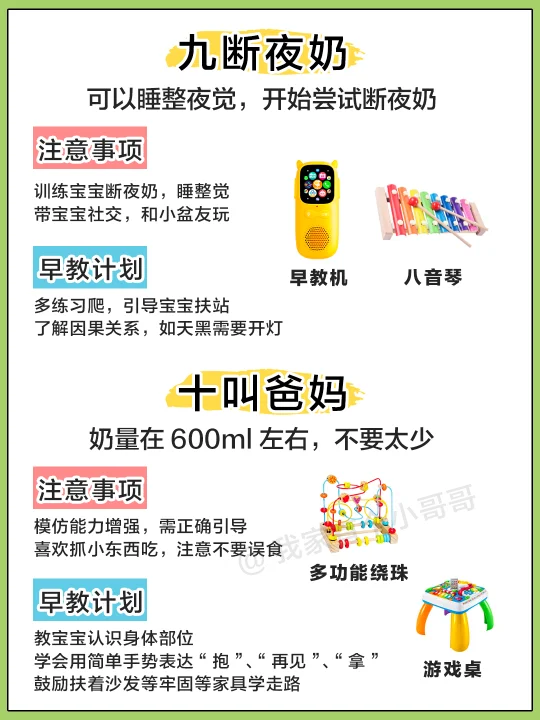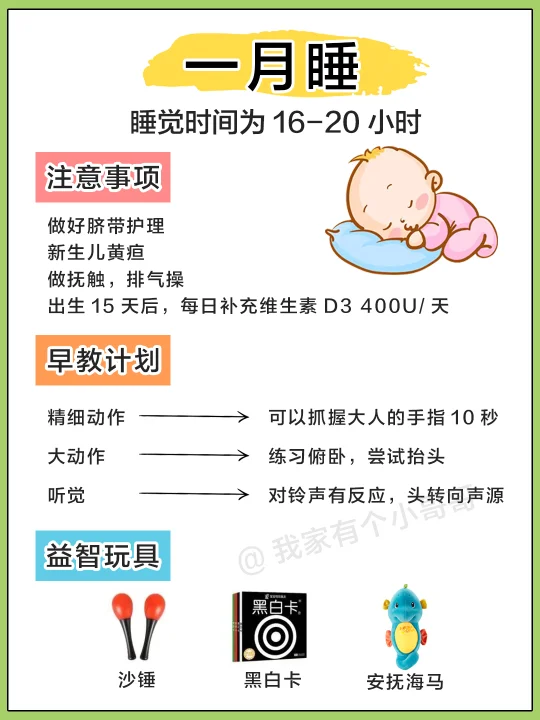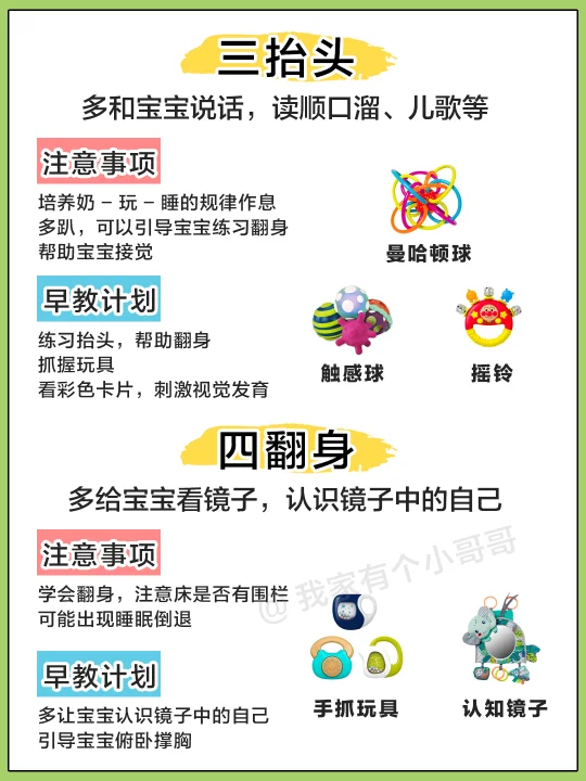 0-12个月是宝宝👶🏻快速成长期,可谓是一天一个样!今天整理了宝宝1岁内的生长发育对照表,新手爸妈建议收藏起来了解哦~ ✅一月睡,二月闹 ✅三抬头,四翻身 ✅五出牙,六辅食七月坐, ✅八月爬九断夜奶, ✅十学语十一站,十二走。