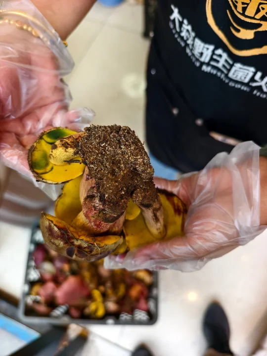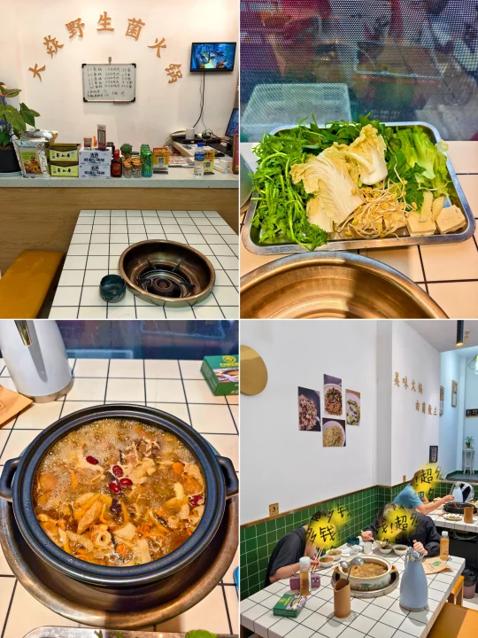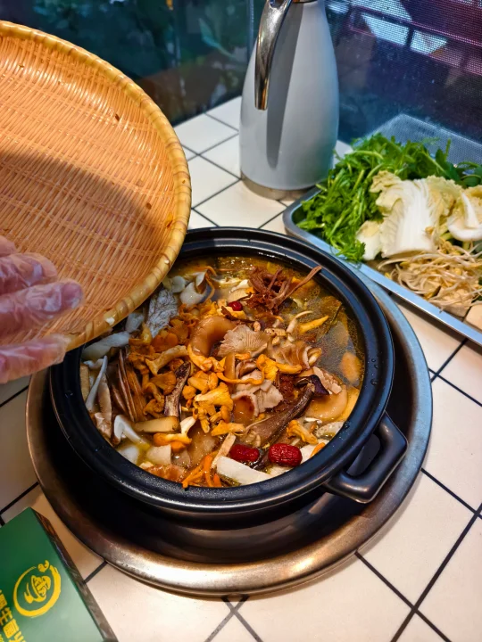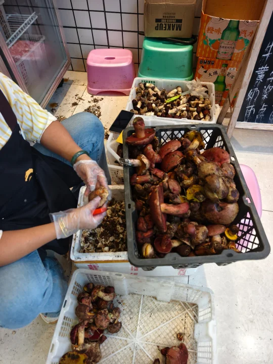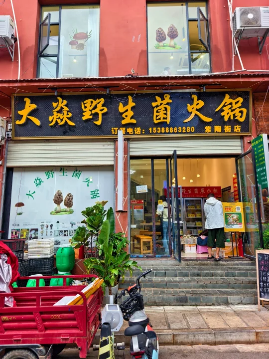 🔥来云南怎么能不吃菌子火锅呢?到建水紫陶街闲逛,找了家附近的"大焱野生菌火锅店",见识到了"见手青",真的是手一捏,就会变青色的。 🔥点了个野生菌火锅,里面有很多鸡肉,还有8、9种野生菌拼盘,煮的时候还给个计时器,到点了才给你发筷子🥢。 🔥量很大,汤也很鲜,这里是绝对没有预制菜的。[笑哭R]