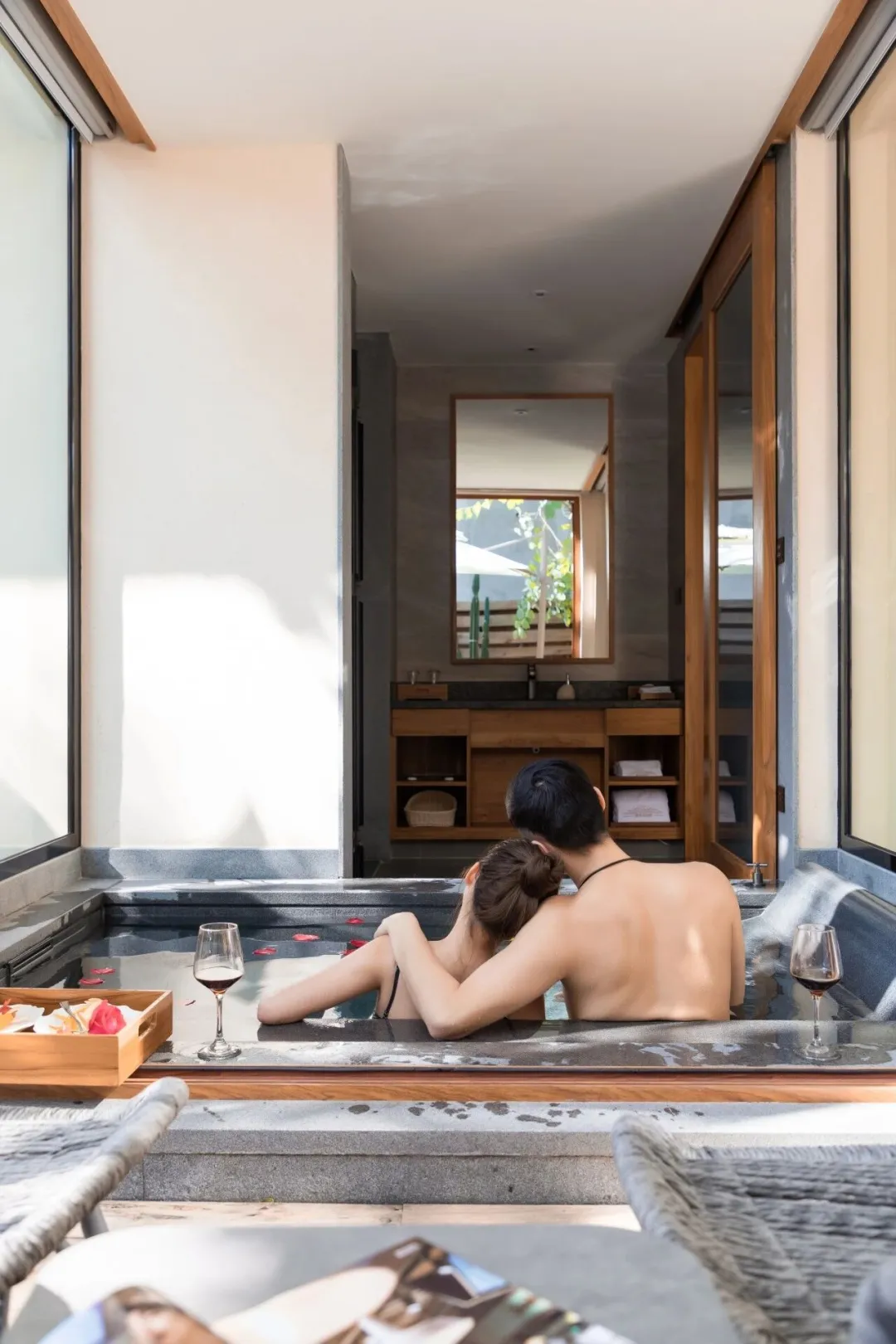房间里的私汤泡池太绝了!晚上放好热水,撒上酒店送的玫瑰花瓣,边泡边看星星,连空气都是甜的~部分房型还带汗蒸房,泡完汤蒸10分钟,浑身疲惫都散了!