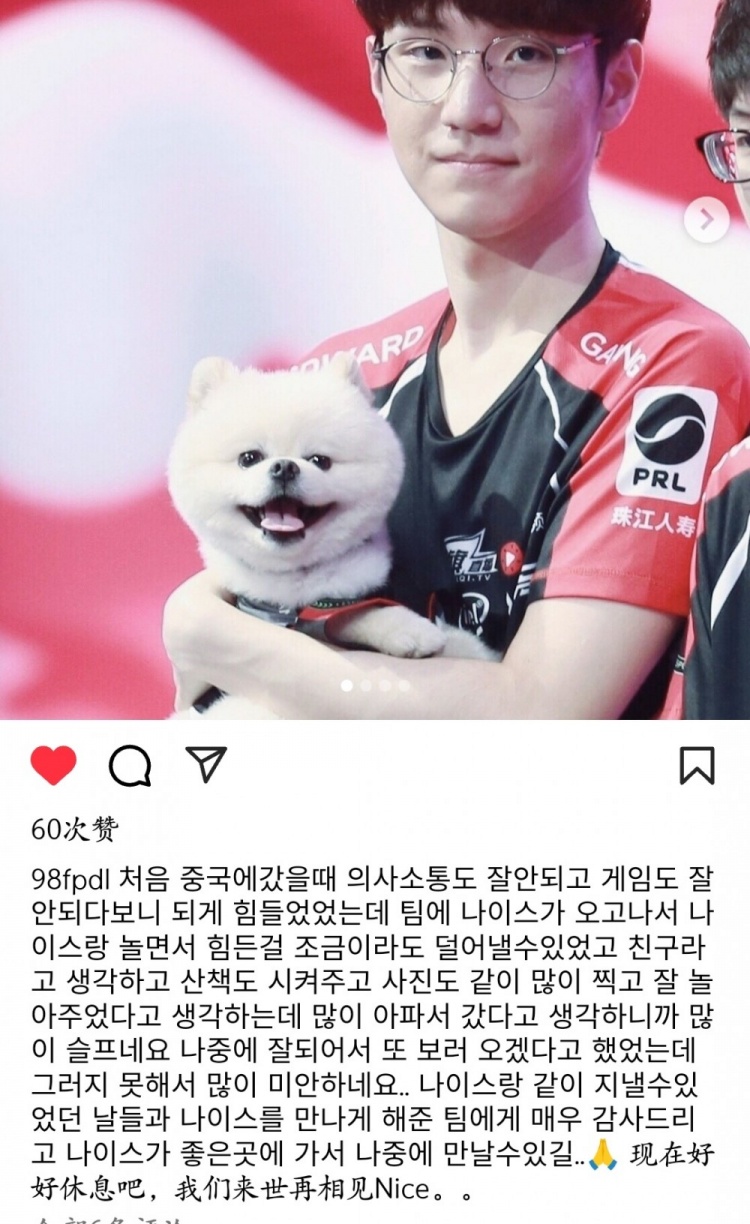 Ray:刚到中国的时候,语言不通、游戏也打不好,真的挺辛苦的。后来有了Nice,和他一起玩的时候,那些辛苦的感觉就能稍微减轻一点。我一直把他当朋友,会带他去散步、一起拍很多照片,也觉得自己陪他玩得还挺开心的。想到他因为生病离开了,真的很难过……说过以后等他好了我们要再来看他,但没能做到这一点,真的很抱歉。