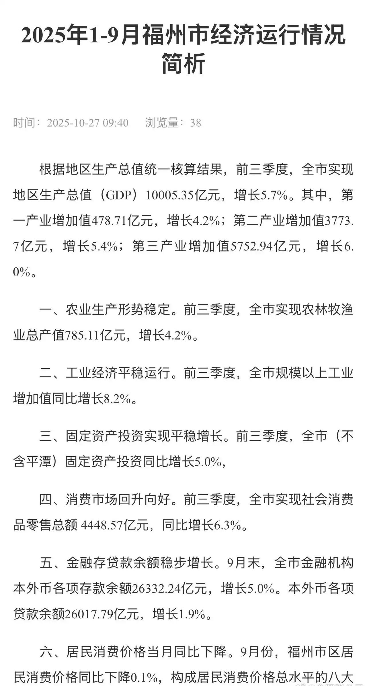 【福州市前三季度GDP出炉】名义增速6.96%,增量651亿,真猛