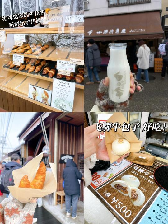 ▪️宫川朝市小吃很多,早餐可以留在这里解决,推荐牛角包,飞驒牛奶,五平饼就是年糕饼。