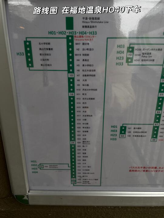 ⭕️现场购票,具体tips翻另一篇帖子。5站台候车,15:40-17:05 (大约1.2h)抵达福地温泉HO40,下车对面就是酒店。