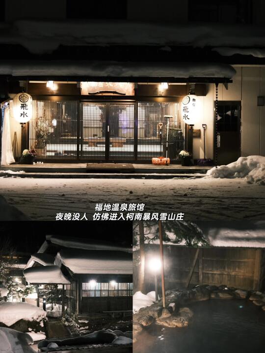 来福地温泉的游客很少,选旅店一定要选一泊二食,村子晚上没有餐厅,连人影都没有。吃完在福地温泉乡溜达,飘着雪,晚上泡温泉,有私汤。此次行程里最喜欢的地方。
