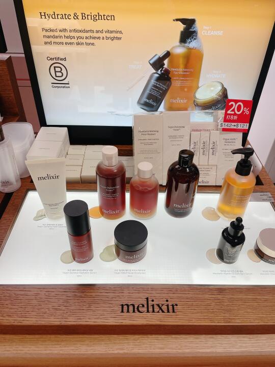 4.Melixir 有机素食主义,价格是tm官网的六七折,入了绿茶爽肤水+洁面。送了一堆小样。还入了几款没用过的有机品牌,极简包装,长在我的审美上: