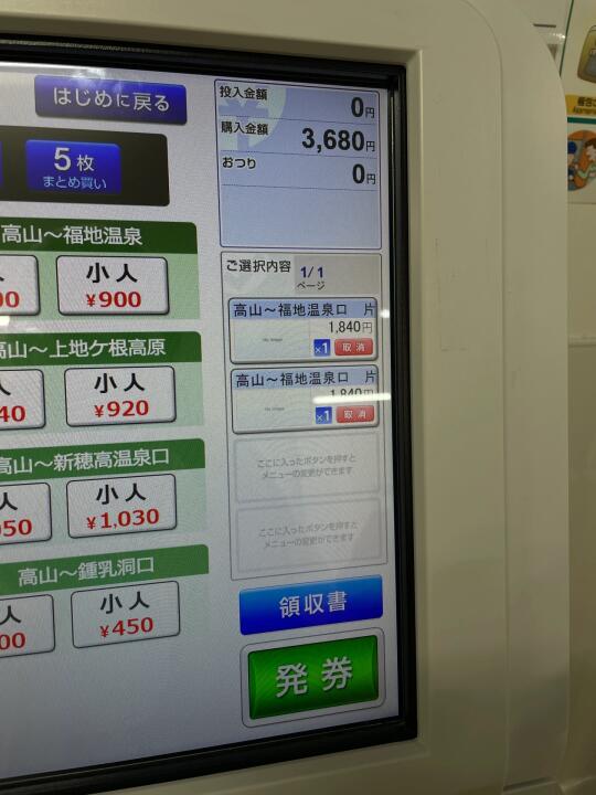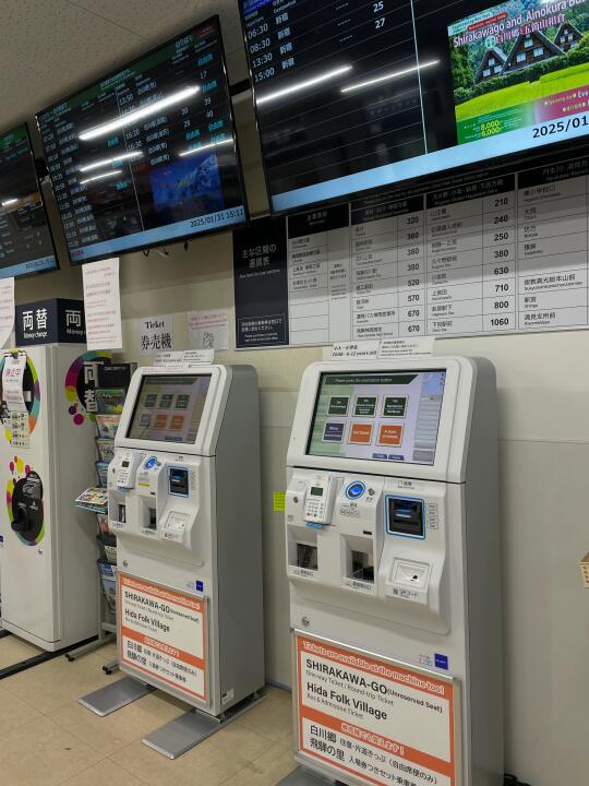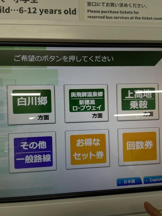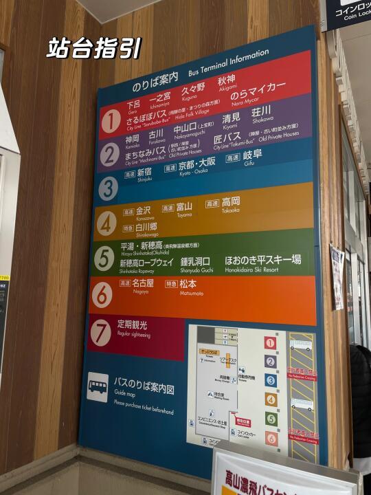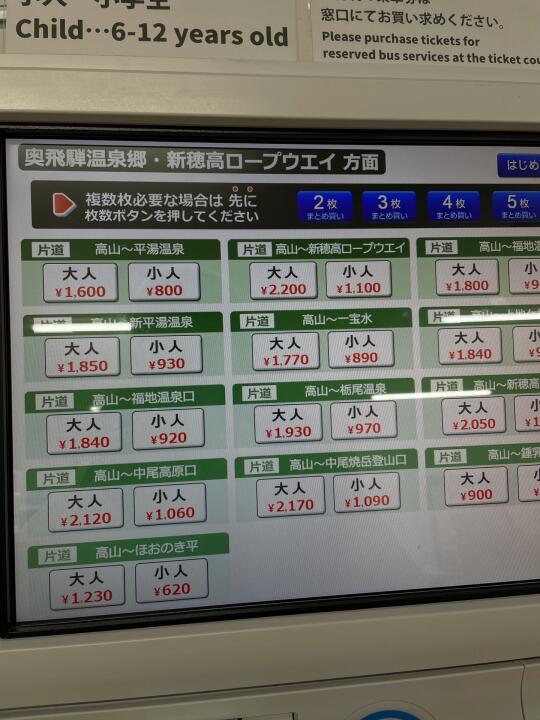 无论是去奥飞驒温泉乡还是白川乡金泽,都是在高山的浓飞巴士总站🚌乘车。今天去往福地温泉,5号站台(其他路线站台指引见图12)去福地温泉的车票只能当天购买,购票机上买票(操作见图5-10)可以微信支付。也可以去人工柜台,有会中文的工作人员。