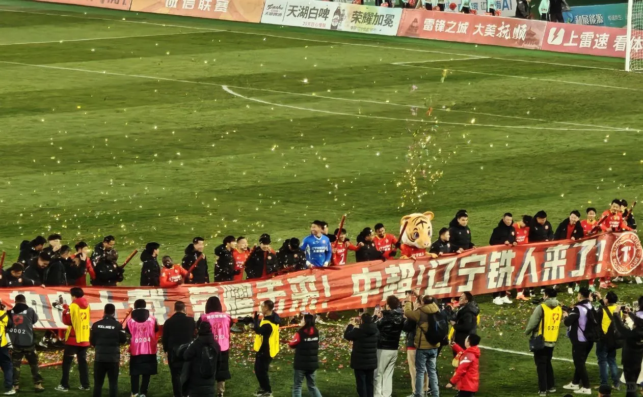裁判一声哨响,辽宁铁人的主场变成了欢乐的海洋。这一刻,他们完成了队史的2个重要第一次:第一次拿下中甲冠军;第一次冲入中超联赛!