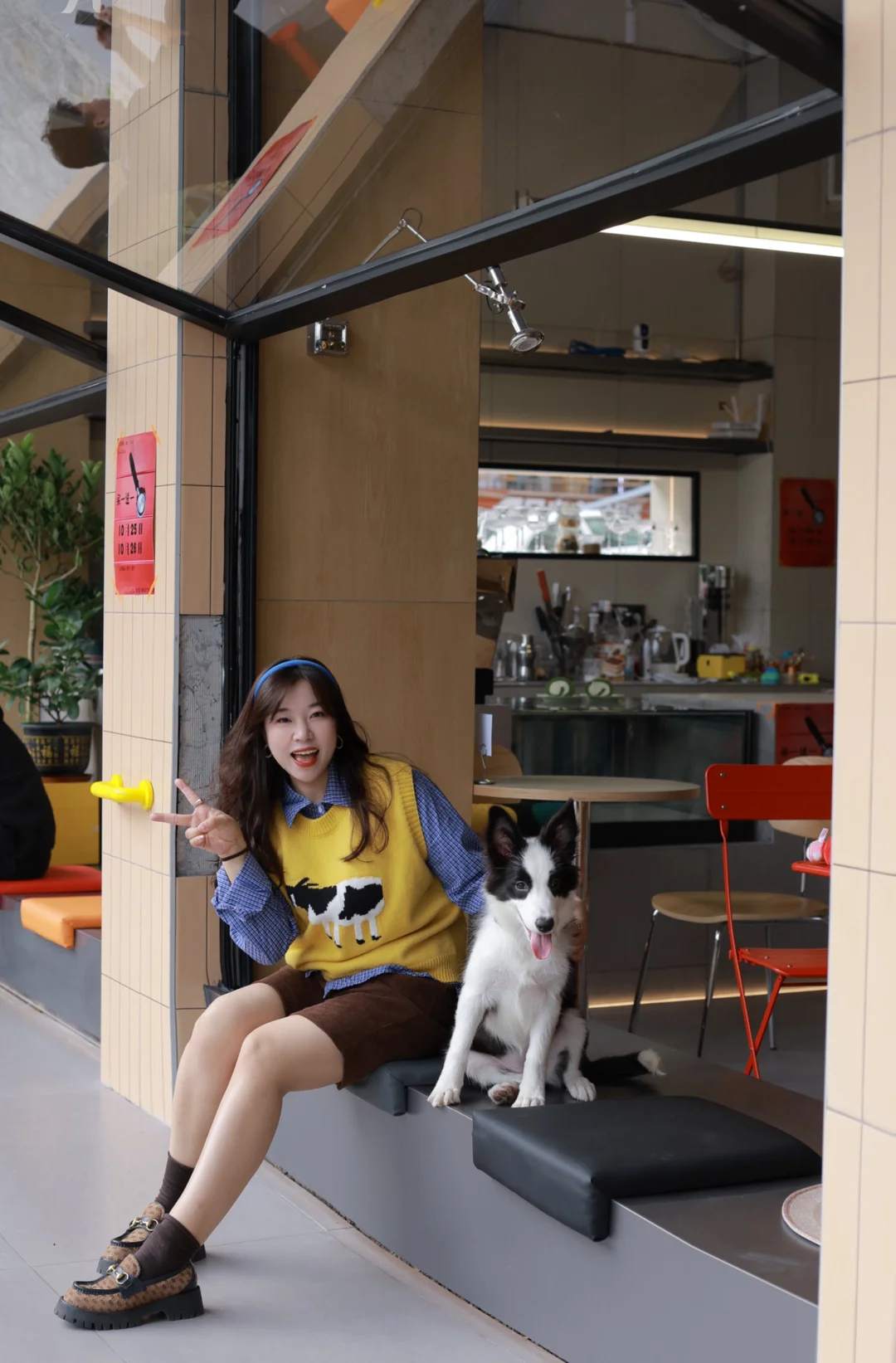 好可爱的一家咖啡店~ 大大的落地窗 小狗🐕🦺也玩得好开心🥳 秋天🍃坐在窗外的位置很惬意😌