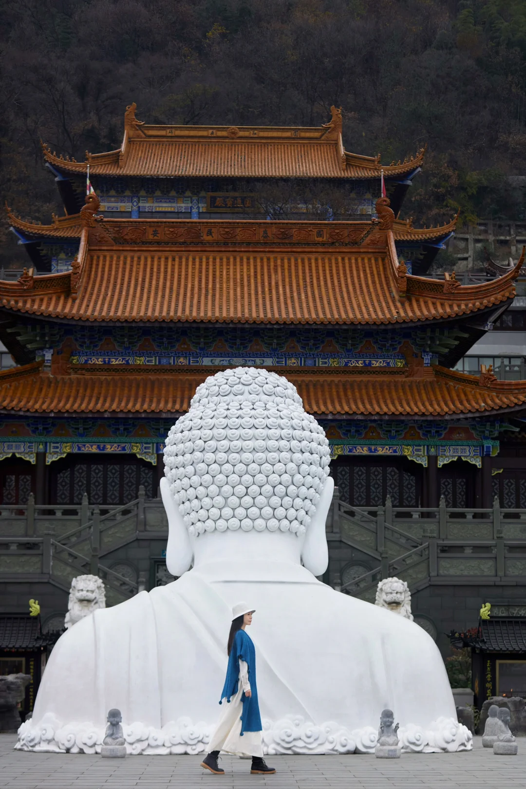 1️⃣半身佛背面拍全景,如果下雨☔️后地面会有倒影,冬天比较干燥,所以镜头不用拉太远