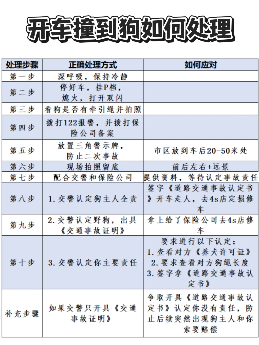 ⚠️重要提醒:发生此类事故后,为防止后续狗主人来索赔,在交警仅开具《交通事故证明》后,争取再开具《道路交通事故认定书》,认定你没有责任,这样后续不论对方怎么找,你也不需要赔付一定的比例。