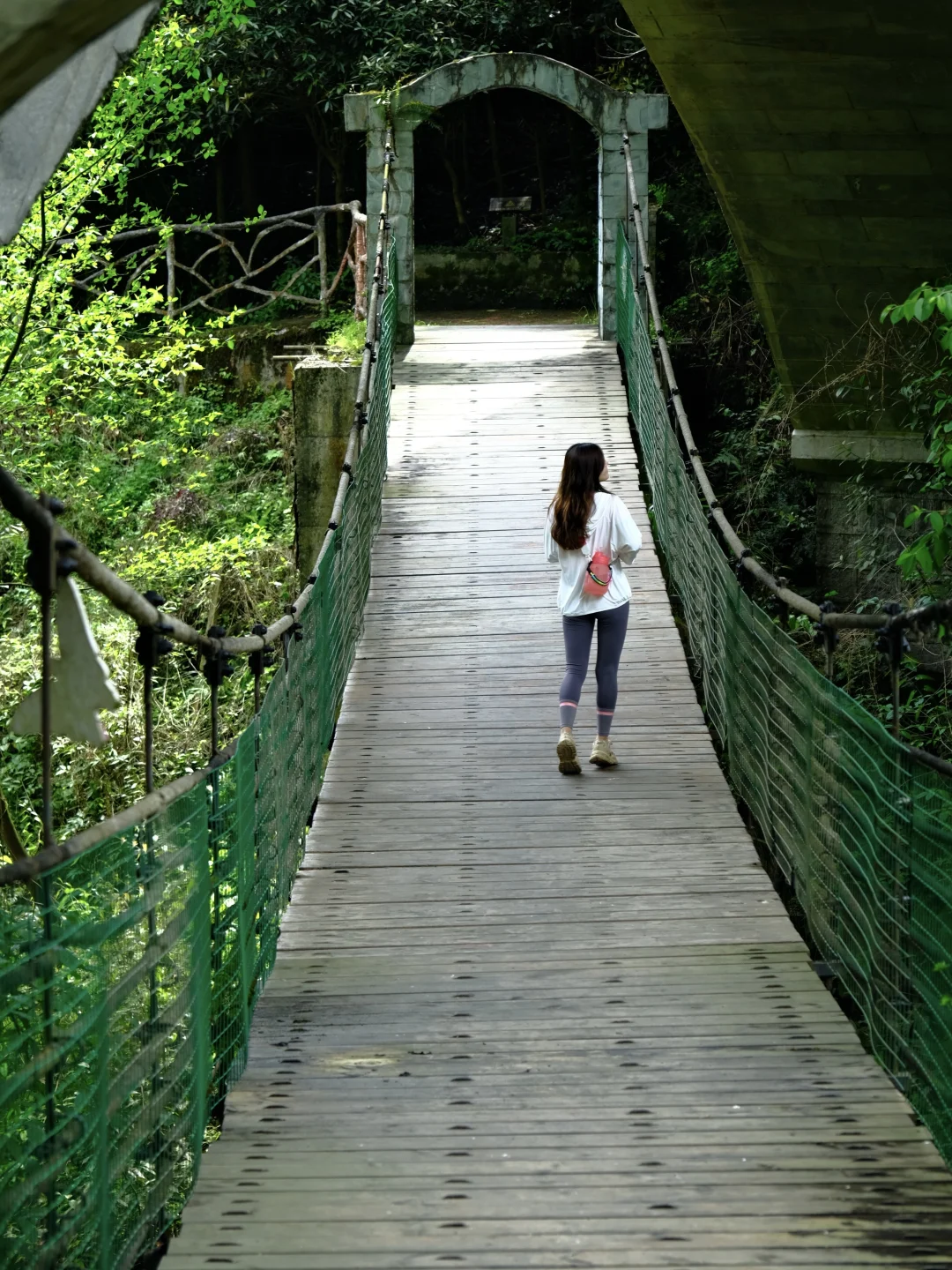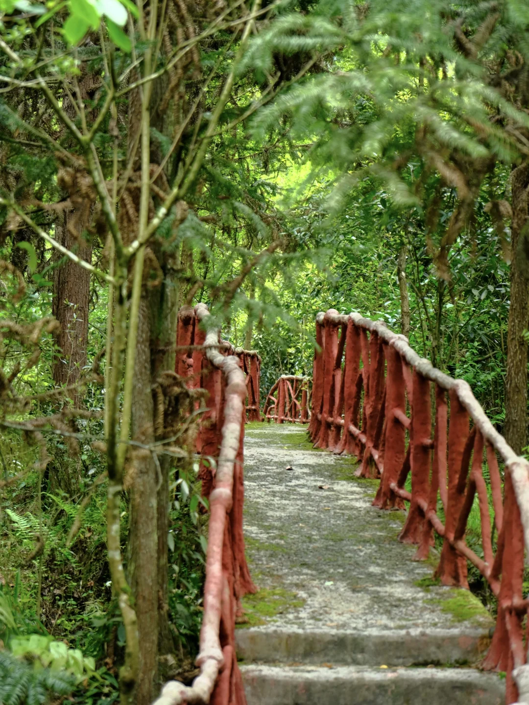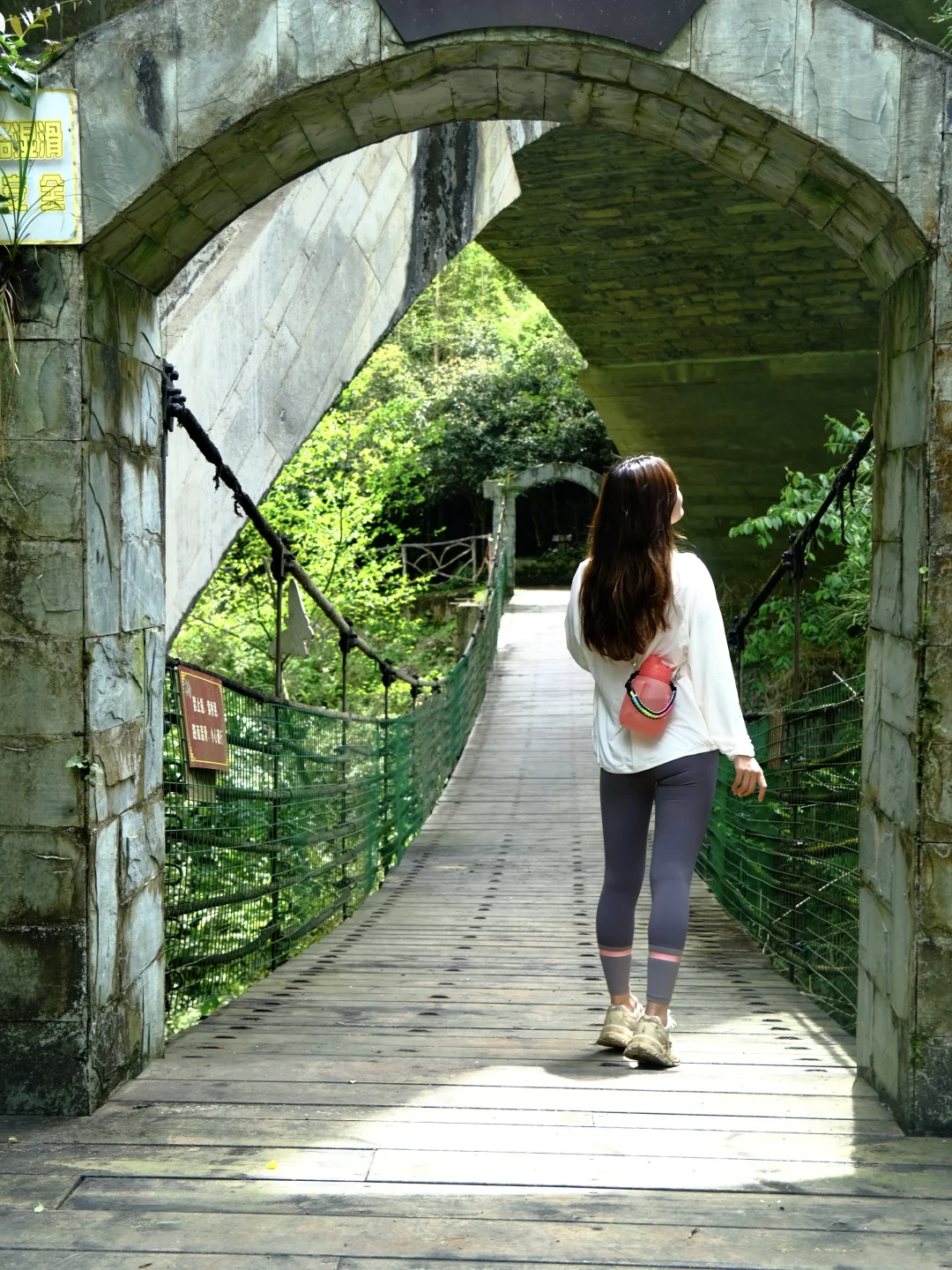 ✅整个栈道依山就势而建,两边是参天古柏,绿意森森;栈道蜿蜒悠长,时不时穿插的林间吊桥,青山、绿水、溪流,峭壁,搭配在一起就像走画卷中