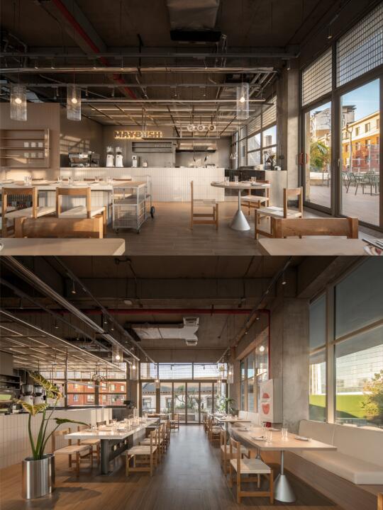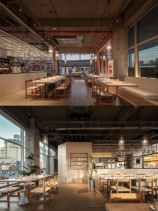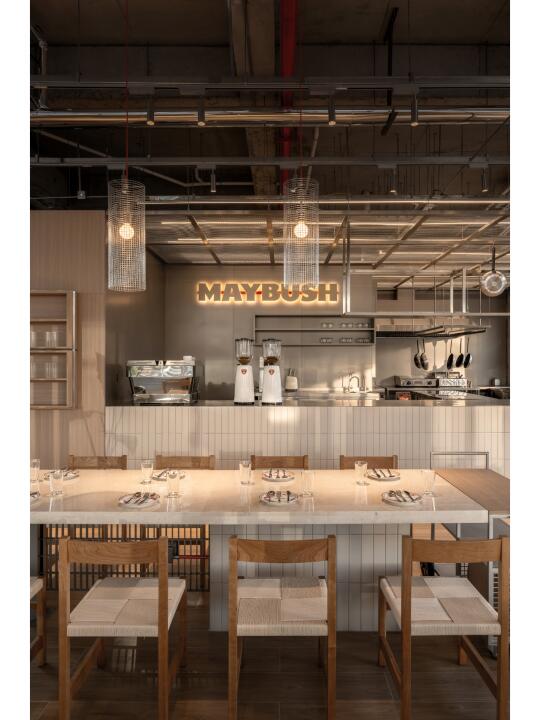 山楂 MAYBUSH是位于沈阳的一家精致的融合菜Bistro,位于美食汇聚的西塔街区。通过设计师与厨师团队以及经营者的打磨与沟通,设计目标是创造一个舒适的场所,运用自然的原木色与金属色的组合,创造有餐饮专业度的温暖空间。