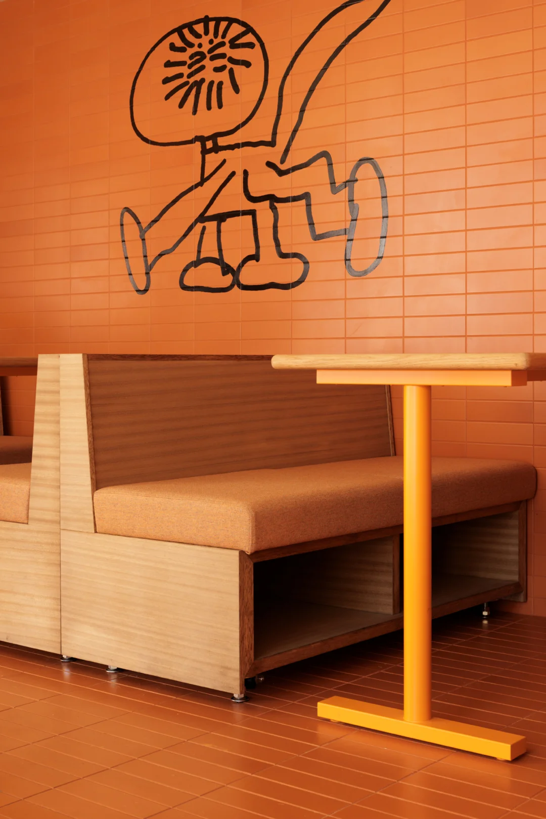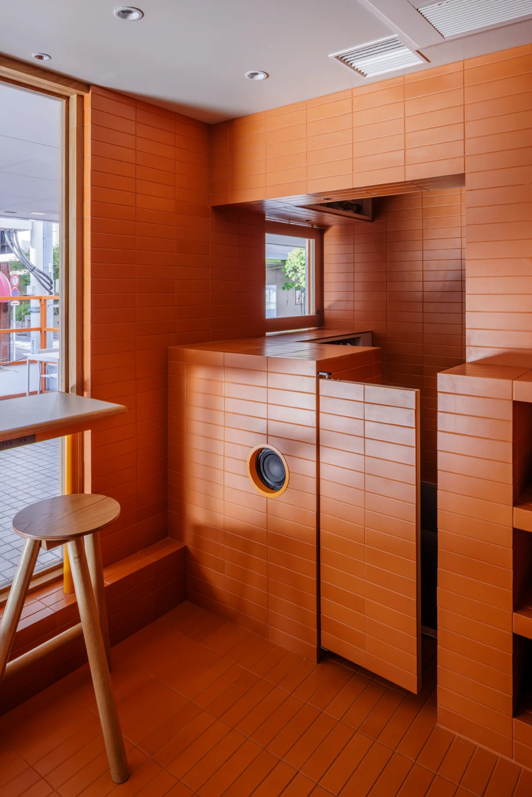借助建筑转角双立面的优势,其中一侧设有甜甜圈外带窗口,另一侧则作为咖喱餐厅(白天)与小酒馆(夜晚)共用的空间。整个项目通过布局精巧的中央厨房实现高效运转,不仅满足三个品牌不同时间段的出餐需求,也可服务 TOYOKE 旗下其他空间。