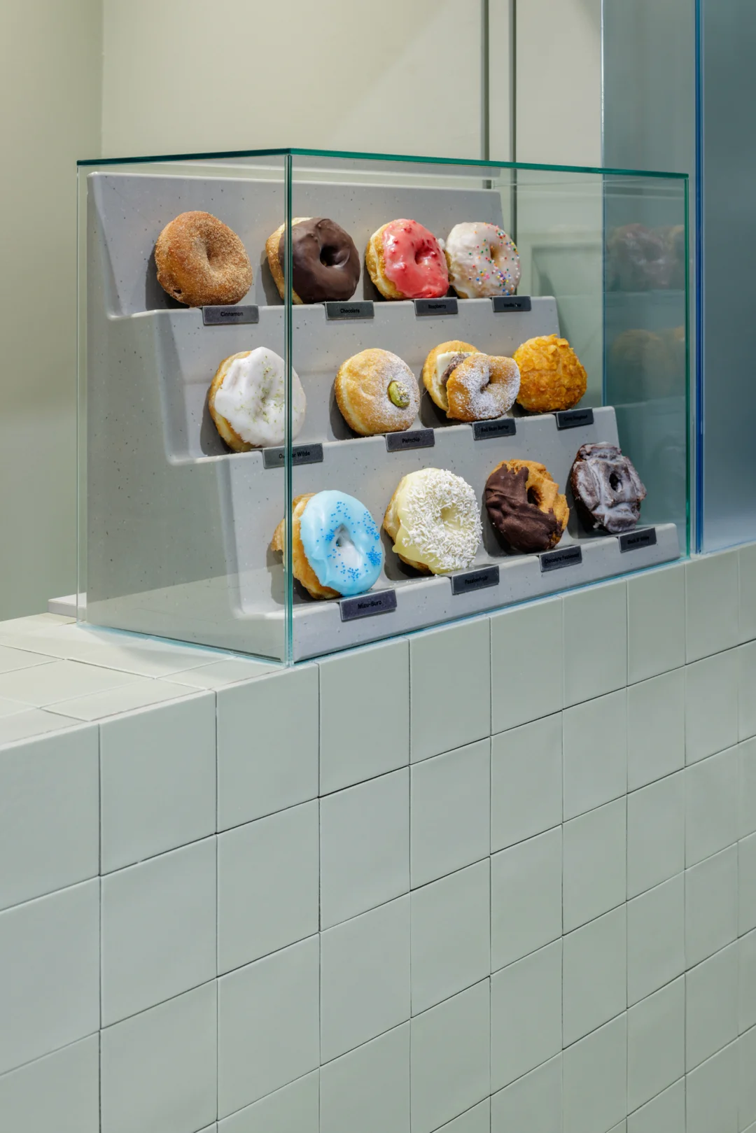 设计践行“少即是多”的理念,室内同样以最小化材料使用为核心,主要采用瓷砖与玻璃两类材料,但通过在不同空间中变换颜色、质地与铺贴方式,每一个店面都展现出独特性,同时在整体上又保持视觉统一。