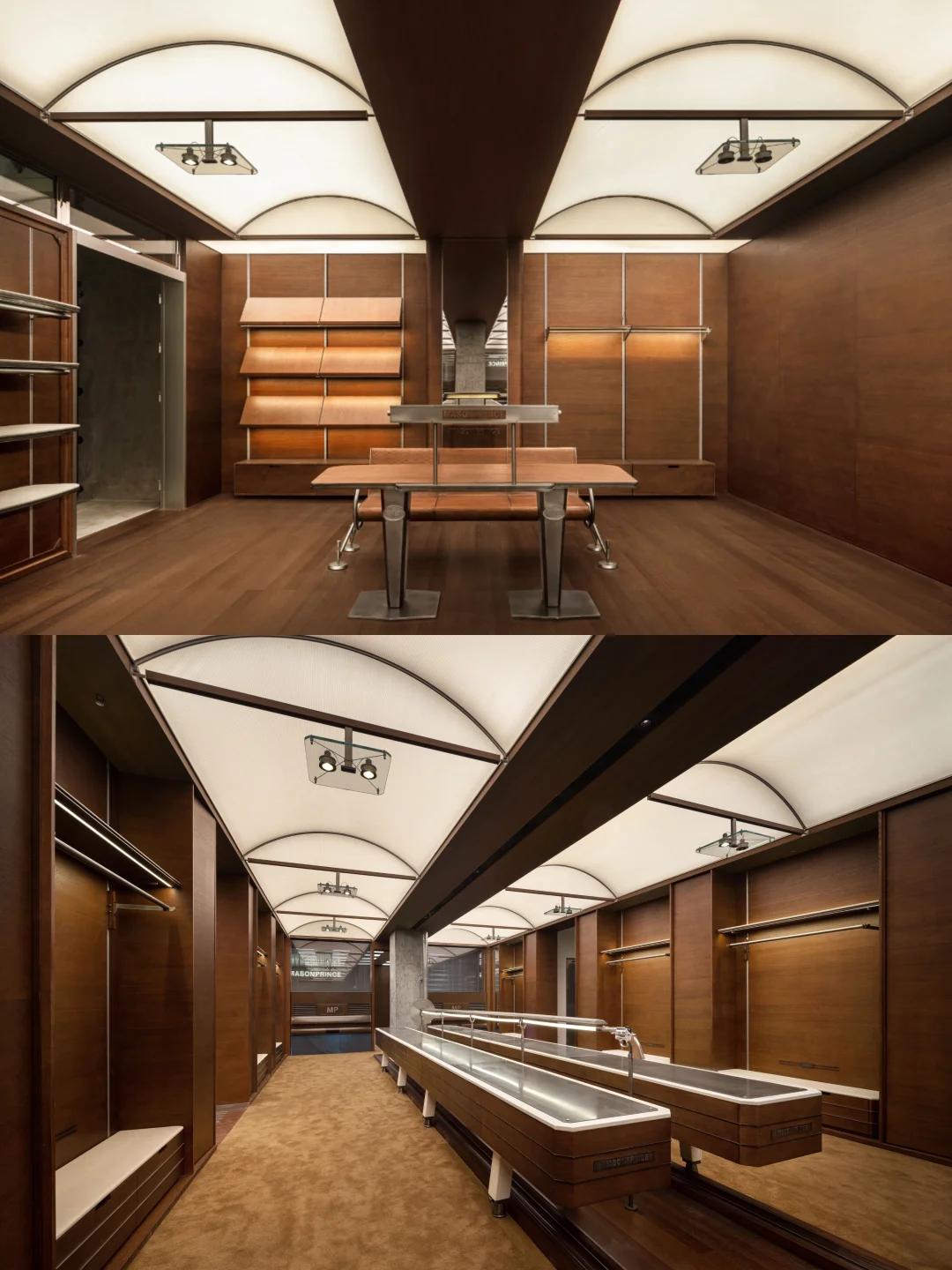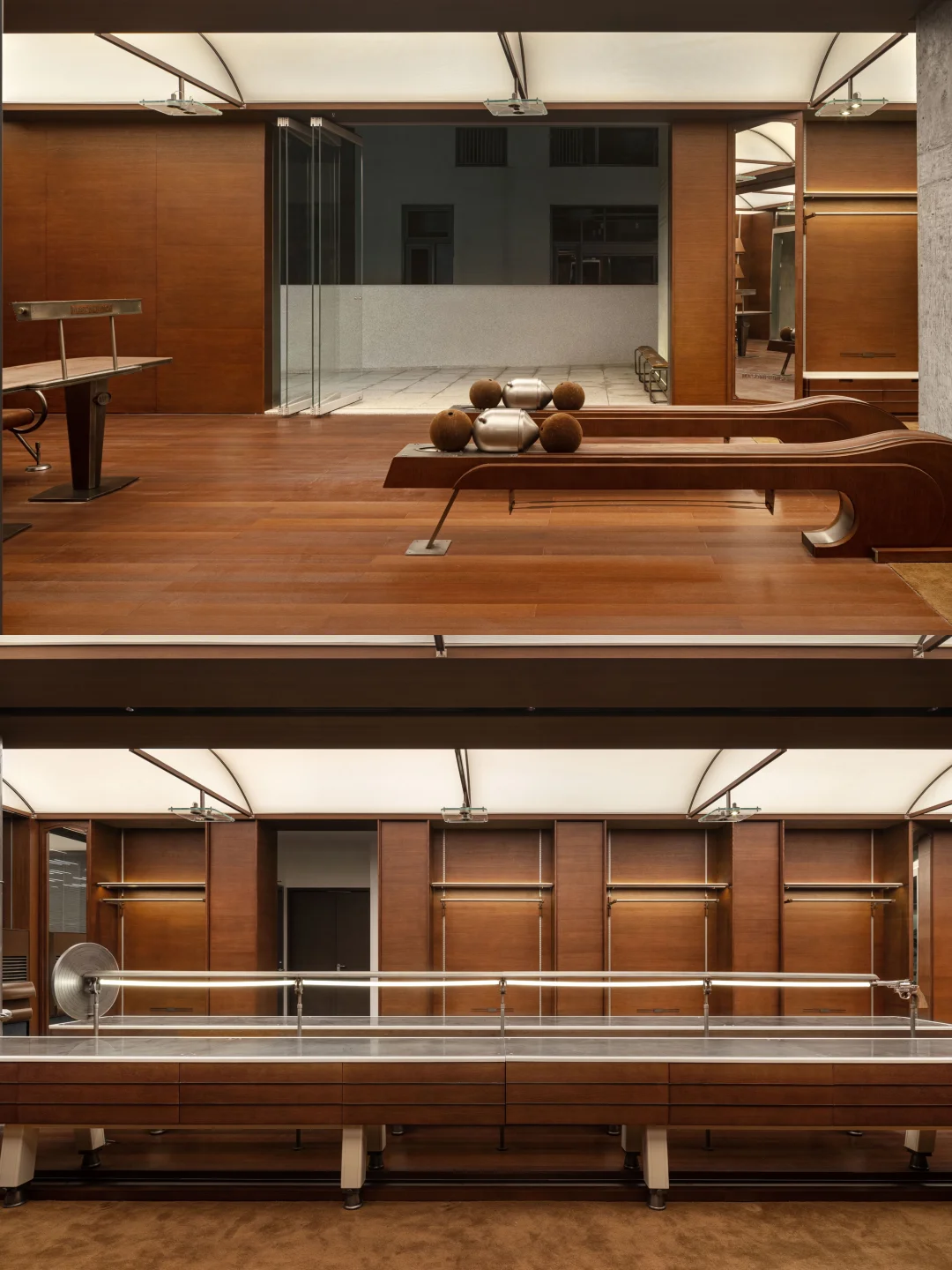 建筑外立面采用几何切割的“无装饰”语言回应“无阶”理念,而内部空间则转向“叙事构筑”——跑道、泳池、办公桌的转化关系,成为连接运动精神与生活方式的媒介。
