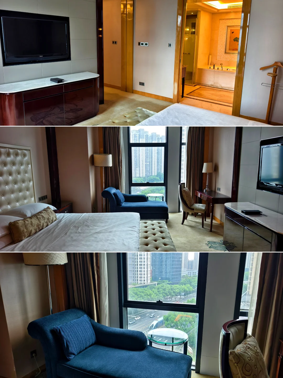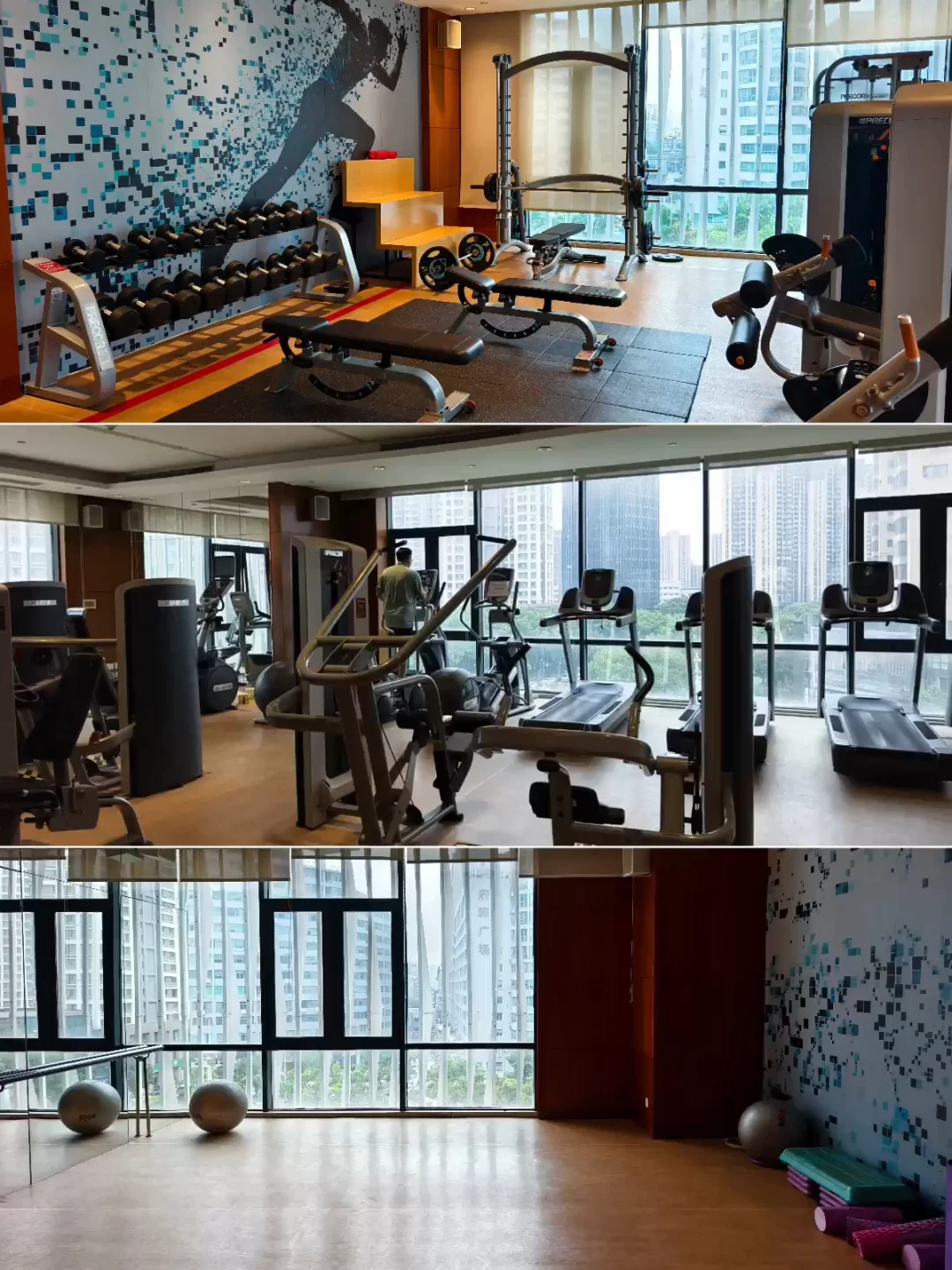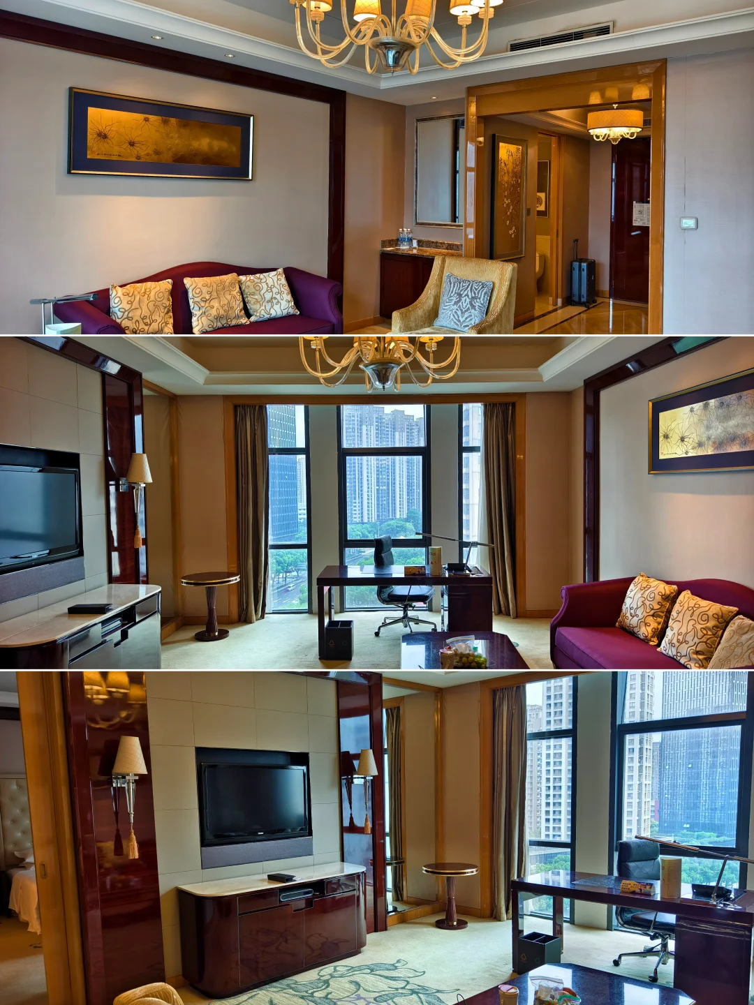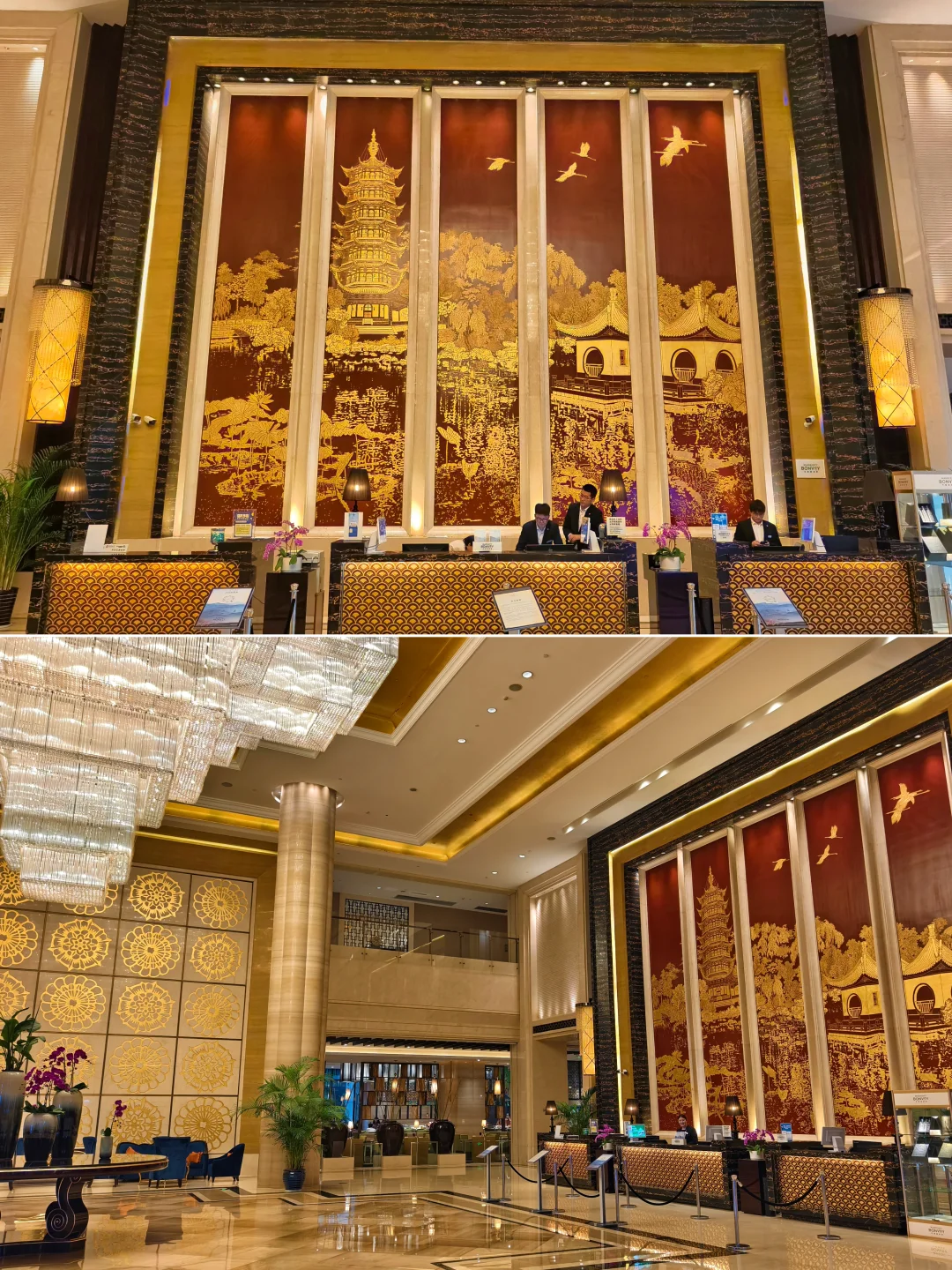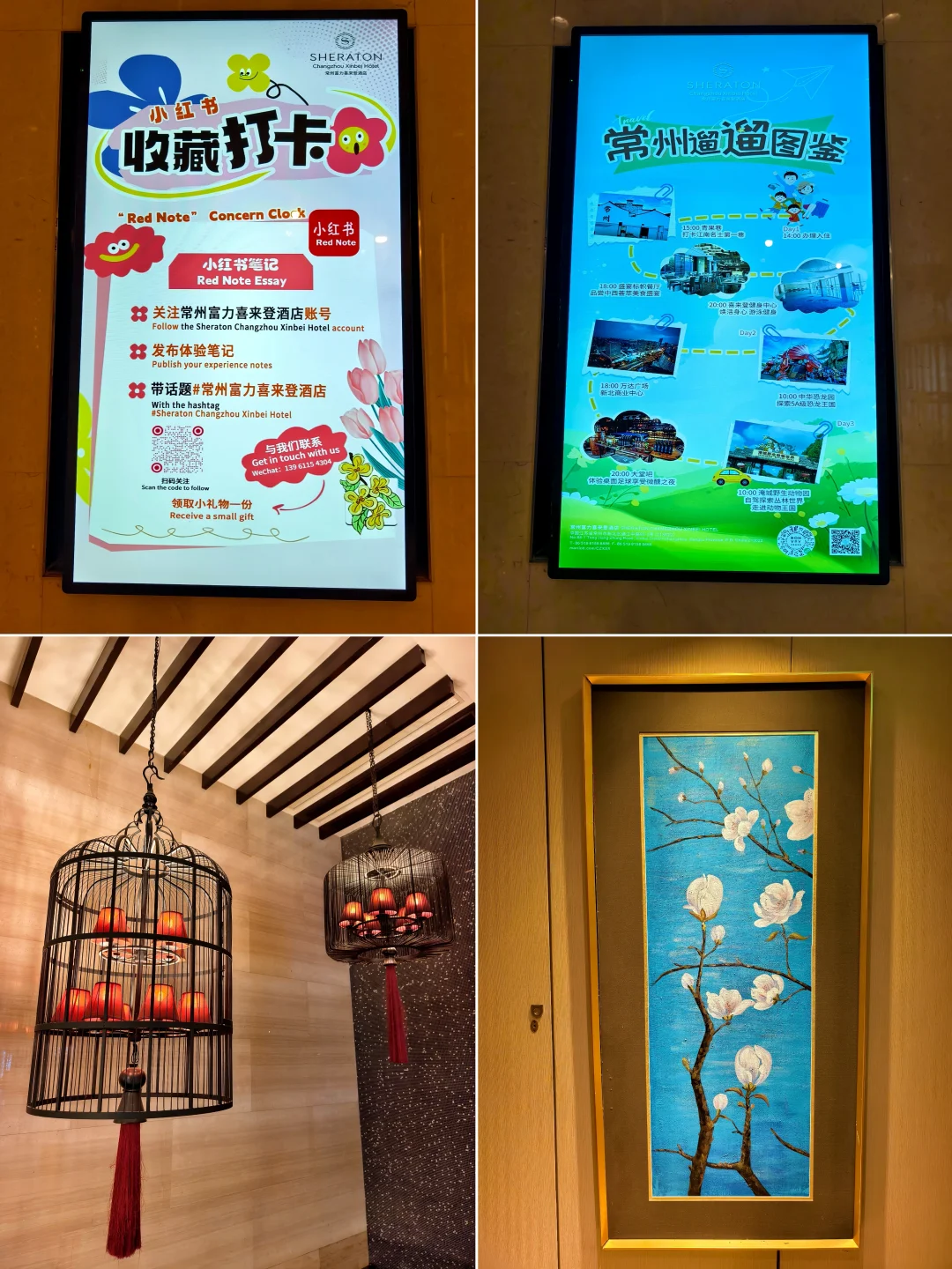一🔥、概览 | Overview 常州富力喜来登酒店,位于常州新北区万达广场旁边,酒店大堂在一楼,一进酒店就感受到了浓浓的老干部风,万达气息浓厚。 大堂的背景墙是常州著名的景点,常州天宁寺塔(天宁宝塔)。 (P1~P5)。 二🔥、客房 | In Room 订基础房,升级到了1卧室特大床迎宾套房,80平,方方正正、中规中矩的万达老干部风布局,年代感很明显了。Minibar收费,入门处有客卫,窗外是城市街景。 主卫分两侧配置的双台盆还是非常实用的。硬件都有了岁月的痕迹,写字桌的座椅都已经开裂了,( P6~P10 )。 三🔥、餐饮 | Dining 行政酒廊位于酒店的18层,这里提供下午茶和欢乐时光,HH欢乐时光中规中矩,居然还有面档,酒廊人不算多,不用担心大家会一拥而上。(P11~P12)。 早餐在酒店1层 ,基本就是喜来登的平均水平,惊喜的是有鲜榨果汁和清补凉,当然少不了常州特色~麻糕。(P13~P15)。 四🔥、设施 | Facilities 健身房和游泳池位于酒店5楼。(P16~P17)。酒店边上就是常州新北万达广场,不远处那个尖顶建筑是常州万豪酒店。。(P18)。