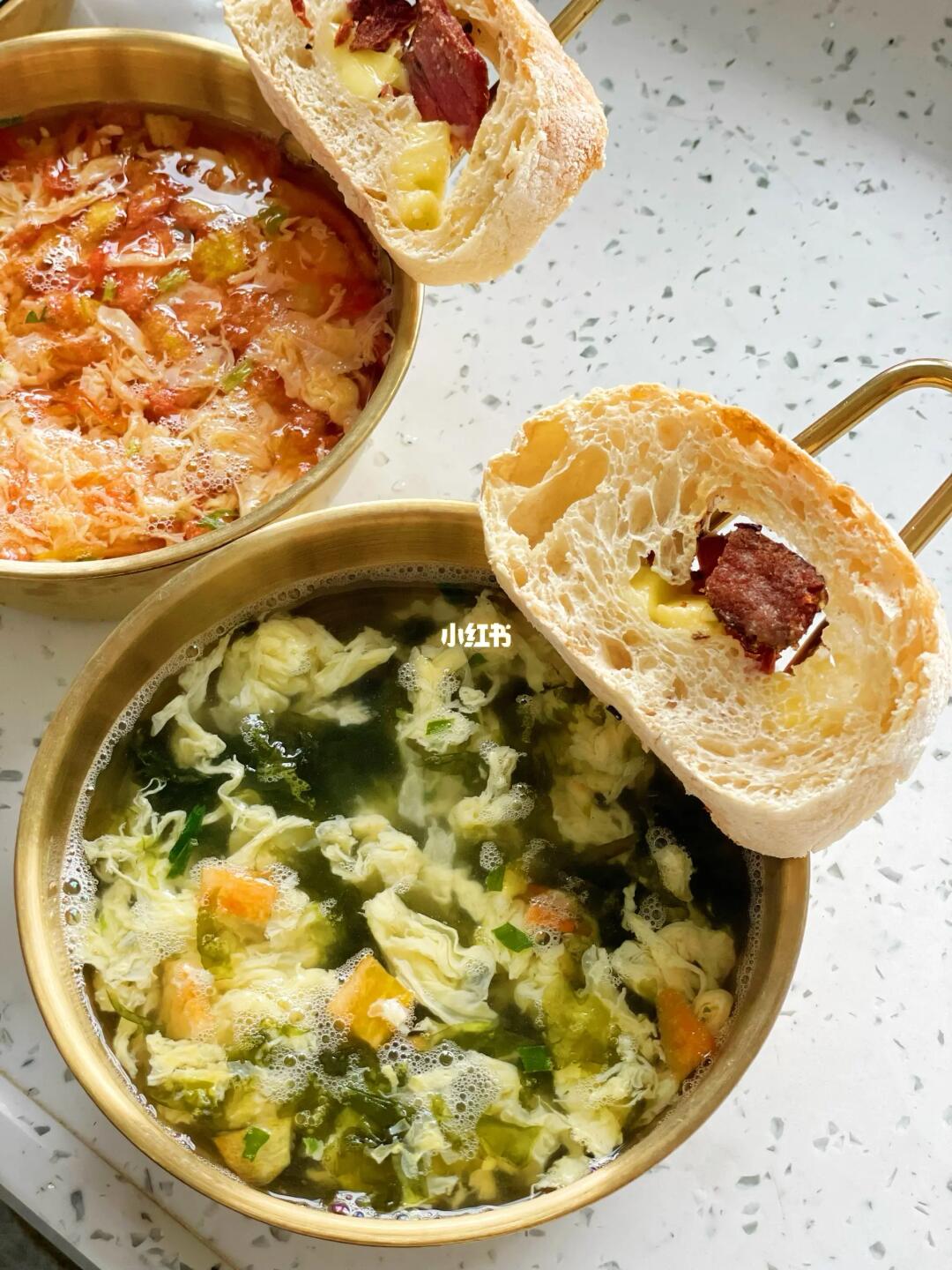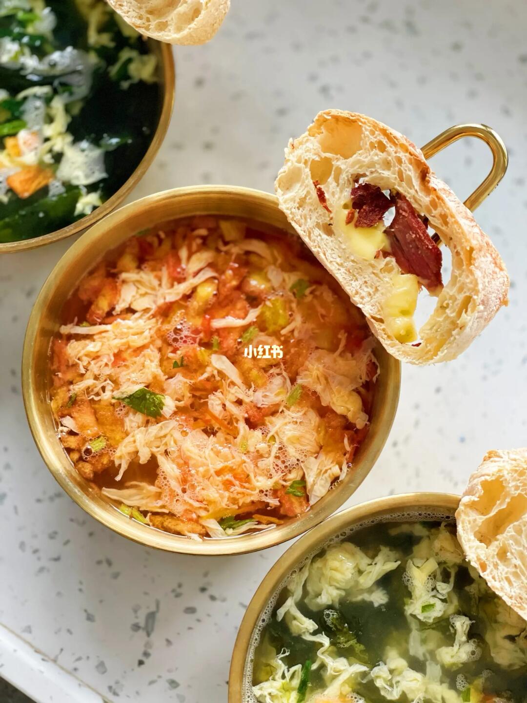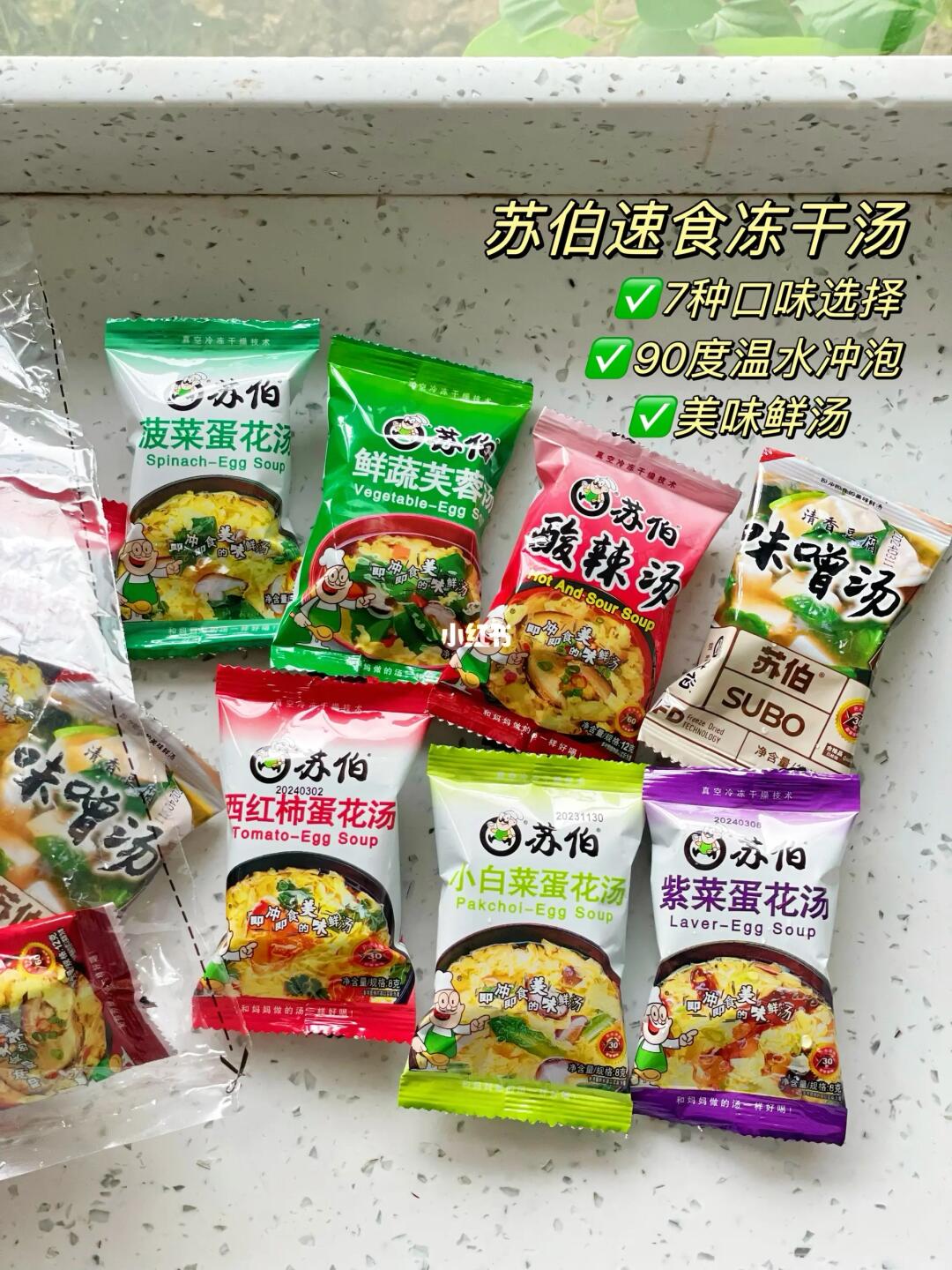 🌟冻干蔬菜汤 ❤️喝的是苏伯速食冻干汤 ✅加入90度开水,冲泡60秒即可 ✅真材实料,真实有菜有蛋 ✅一共有7种口味选择。不添加防腐剂,冻干技术可较大限度保留食材营养 🌟搭配芝士牛肉恰巴塔 烤脆的面包,沾着热汤吃,很舒服