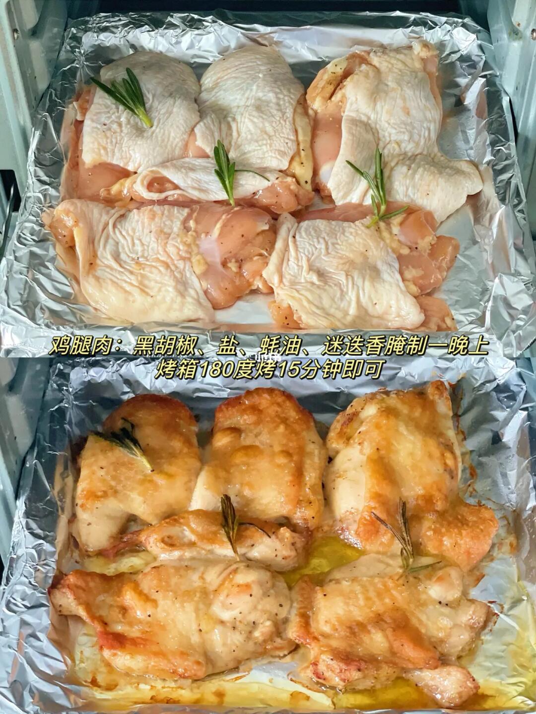 🌟迷迭香烤鸡排 鸡腿肉|迷迭香|黑胡椒|蚝油|盐 1️⃣以上调料腌制鸡排,建议腌制隔夜迷迭香味道更重 2️⃣烤箱180度鸡排烤15分钟即可 🌟蘑菇螺蛳粉 口蘑|胡萝卜|蘑菇汤|螺蛳粉|蚝油 1️⃣螺蛳粉煮熟盛出备用 2️⃣口蘑、胡萝卜丁一起炒香。加入蘑菇浓汤,蚝油调味 3️⃣加入之前煮好的螺蛳粉拌匀即可 🌟水煮西兰花