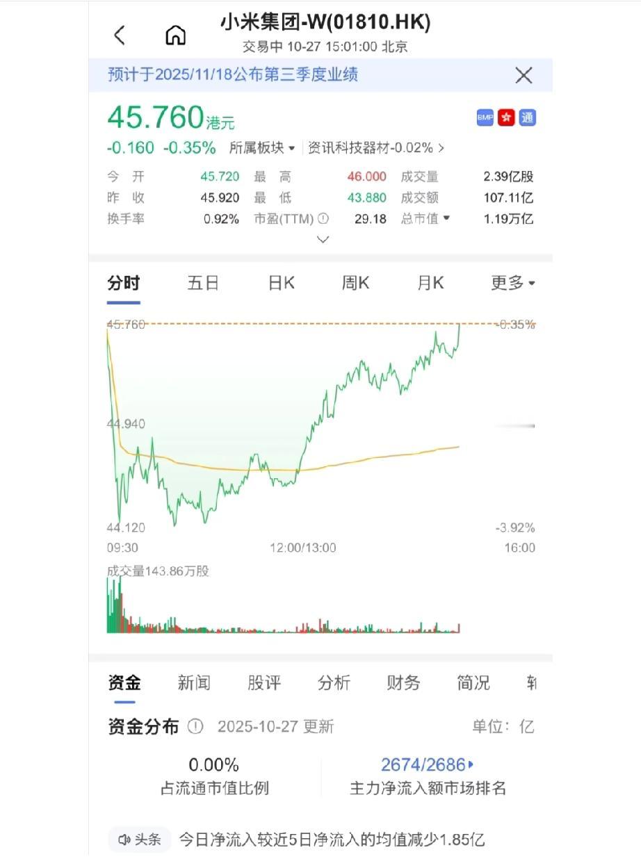 小米港股今日逆势下跌,网上对这种走势却有截然不同的看法! 继续看空的股民表示:小米的估值就是靠汽车撑着,现在汽车安全受到了质疑,整个估值逻辑可能都要重新推翻重来,我已经看到35以下了。 看多的股友则表示:今天这么明显的洗盘看不出来吗,下午不是已经在拉起来了吗?小米基本面根本没有变,yu9上市前肯定会有一波大涨,也肯定会冲破前期的高点。我在此立帖为证! 大家怎么看?