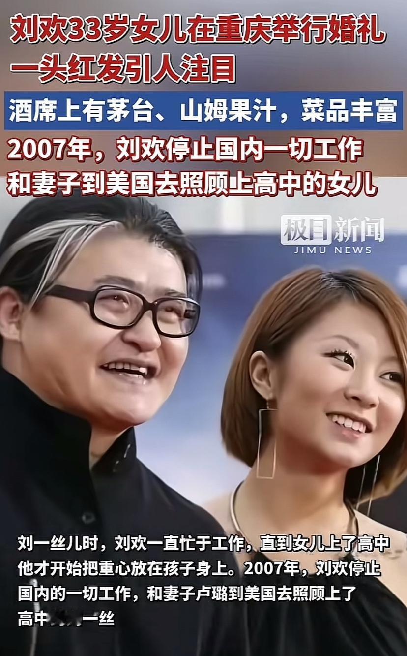 难怪刘欢这么些年不见了,原来十几年前就去美国照顾女儿去了,如今女儿在重庆办婚礼,好样的,一家人又回到祖国,多多支持名人回来。就像刘翔,才40来岁,本来可以为祖国做大贡献的时候,他却去美国享福去了,当初说黄种人行的时候,几亿人真是捧他了。