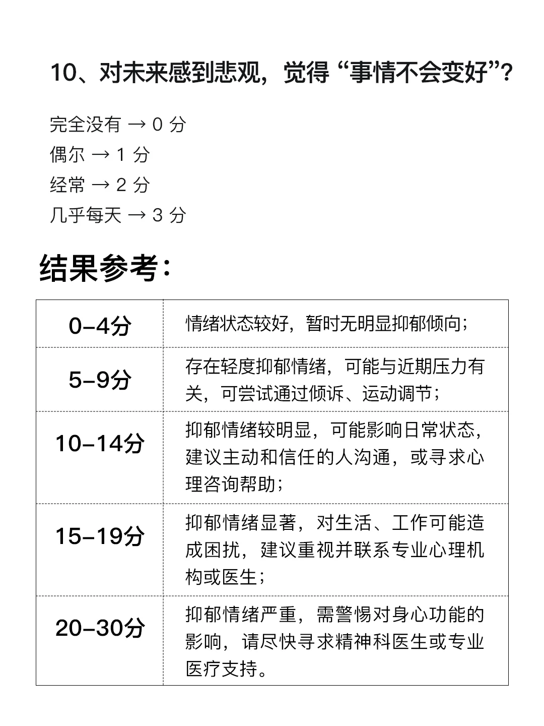 “情绪持续低落?用这份专业的抑郁自测题快速筛查一下。10个问题,帮你初步判断当前状态,及时关注心理健康。”