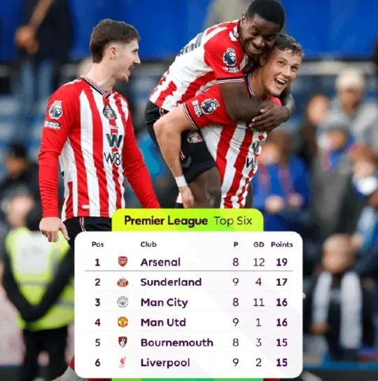 北京时间10月26日凌晨,英超第9轮多场比赛结束战斗,积分榜随之发生了巨大的变化。目前,“大黑马”桑德兰升到了第2名,而曼联也跃居第4名,利物浦则跌到了第6名!