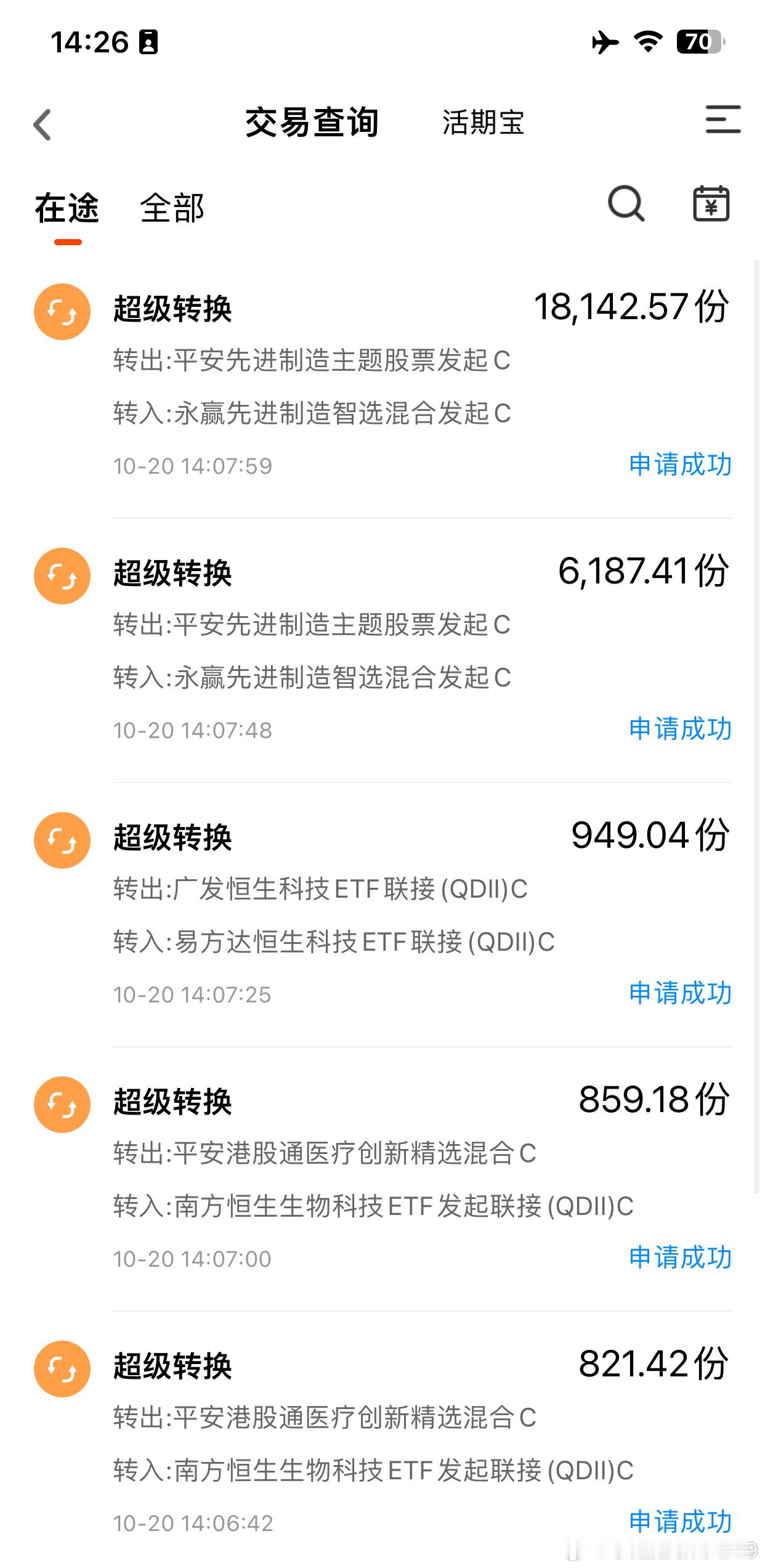 一是机器人基金,把平安先进制造全部转到永赢先进制造,机器人反弹在即,永赢的进攻性更强。