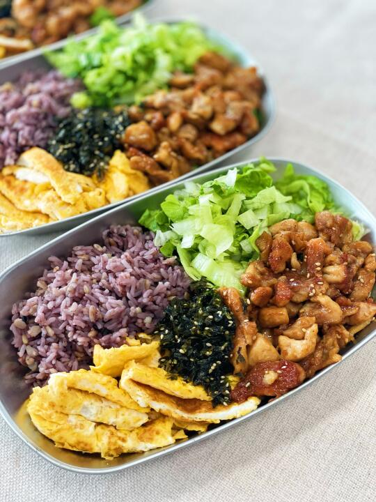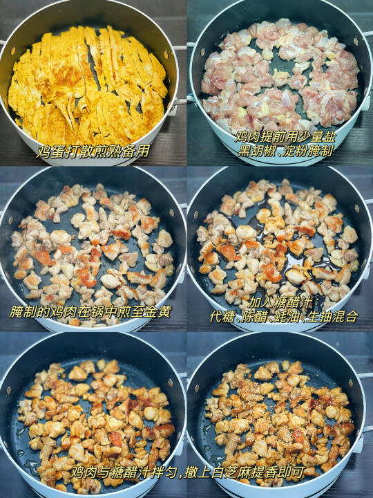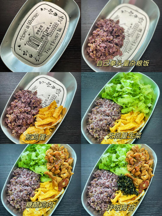 今天晚餐长这样 🌟糖醋鸡肉 鸡腿肉|盐|黑胡椒|淀粉 代糖|蚝油|生抽|陈醋|白芝麻 1️⃣鸡腿肉提前用盐、黑胡椒、淀粉腌制 2️⃣按照自己口味调好糖醋汁 3️⃣鸡肉在锅中煎至表面金黄色(鸡肉完全煎熟) 4️⃣加入糖醋汁炒匀,撒上白芝麻就可以出锅啦 ❤️冬天这么冷就想甜甜的 🌟生菜直接已经切丝,不限量 🌟自己拳头量的杂粮饭 🌟煎鸡蛋 🌟拌饭海苔