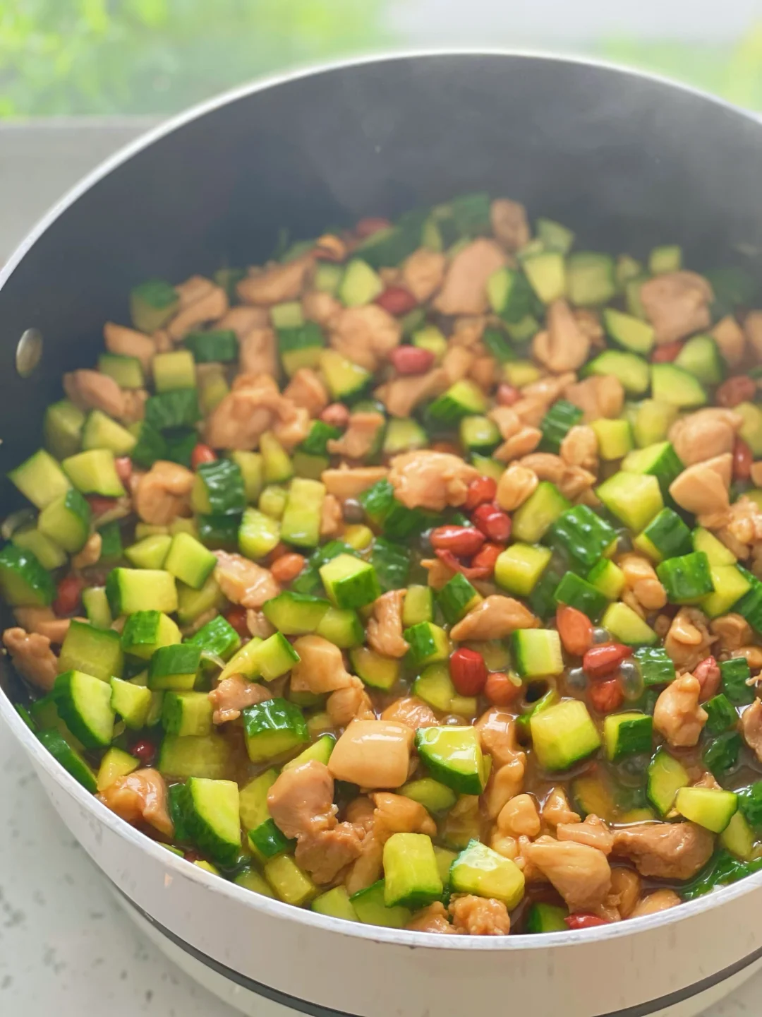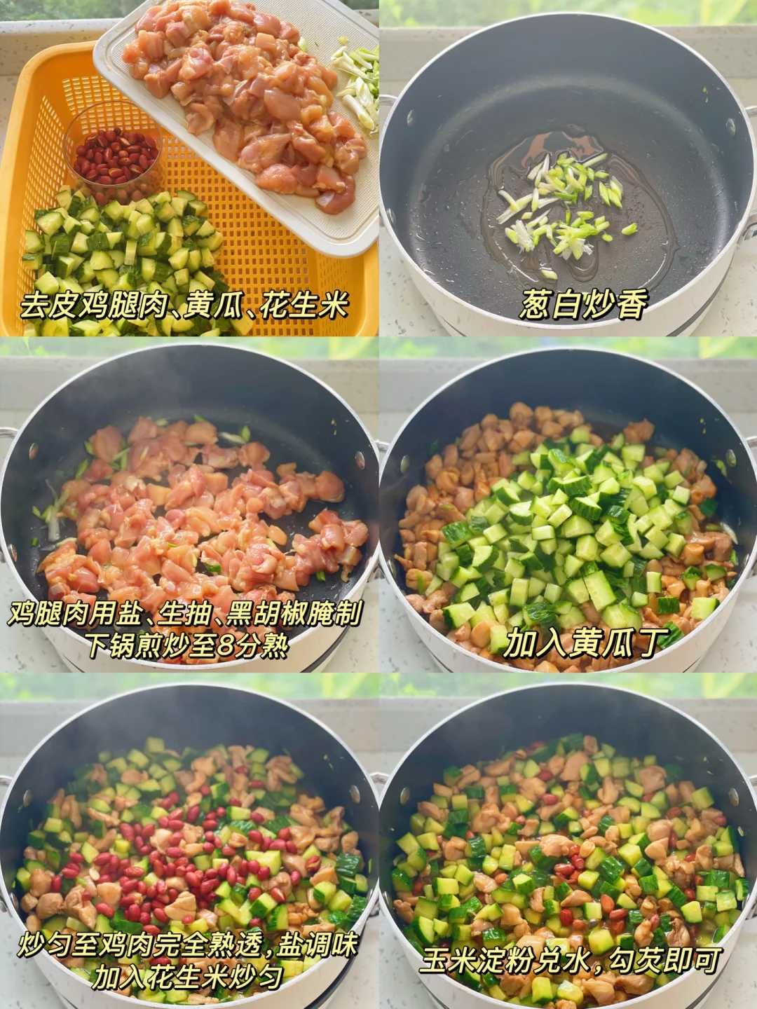 🌟低卡黄瓜炒鸡丁 去皮鸡腿肉|黄瓜|花生|生抽|玉米淀粉|葱白 1️⃣鸡腿肉用盐、生抽、黑胡椒腌制 2️⃣黄瓜切丁备用 3️⃣锅热油把葱白炒香,加入鸡腿肉煎至两面金黄 4️⃣加入黄瓜丁炒匀,盐调味 5️⃣加入花生,玉米淀粉兑清水勾芡就可以啦 ❤️喜欢吃辣的还可以在炒葱白的时候加一勺郫县豆瓣酱,今天做的是咸香口味会比较清淡一些 🌟生菜切丝(蔬菜) 🌟鸡蛋煎熟再切成鸡蛋丝(蛋白质) 🌟今日碳水:杂粮饭
